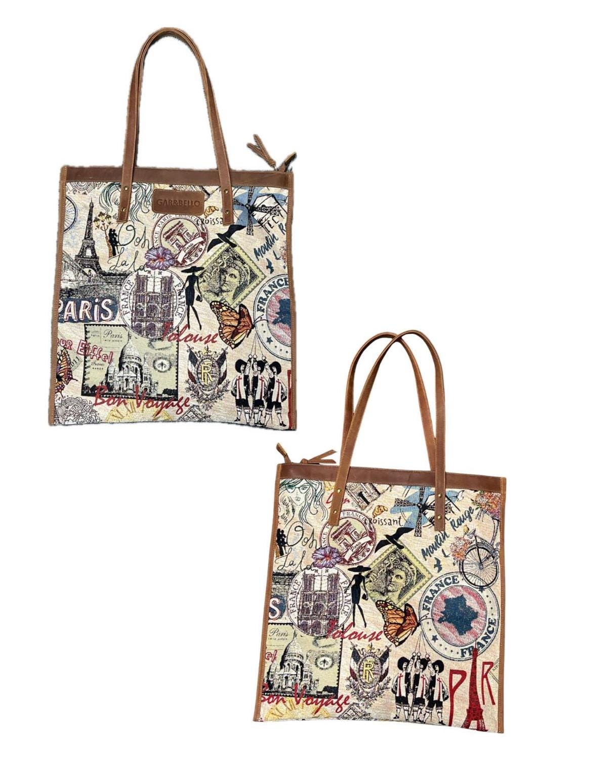 Beautiful, designed Paris and Cream canvas tote bags. Featuring a vibrant French-inspired print on both sides. Natural cream canvas on both sides. These bag offers the perfect blend of fashion and function. Can be used at a farmers' market, on the beach, or on a weekend trip. A stylish and sturdy shoulder bag will be your go-to companion. The genuine leather handles and a touch of sophistication, while ensuring durability and comfort.