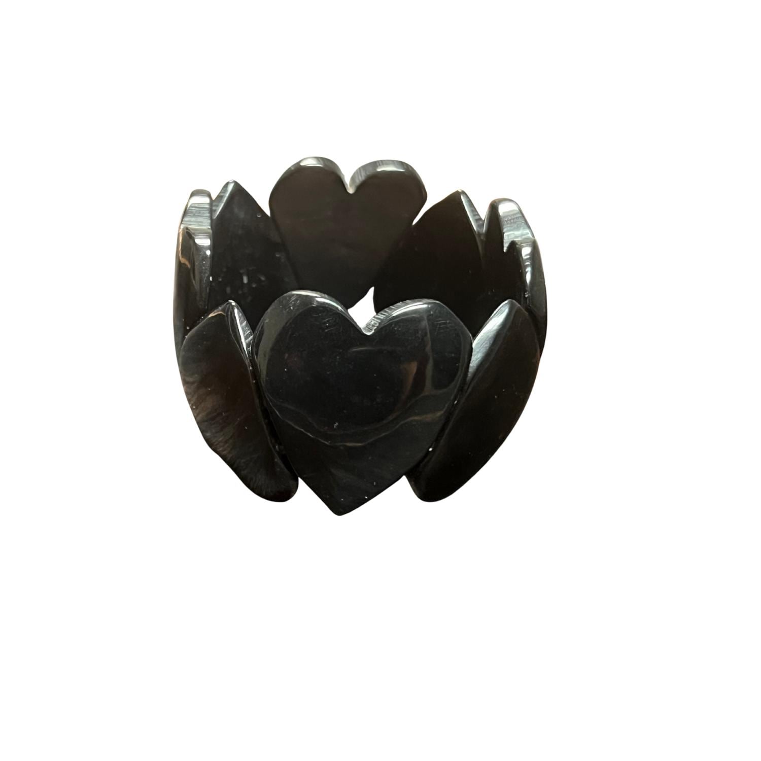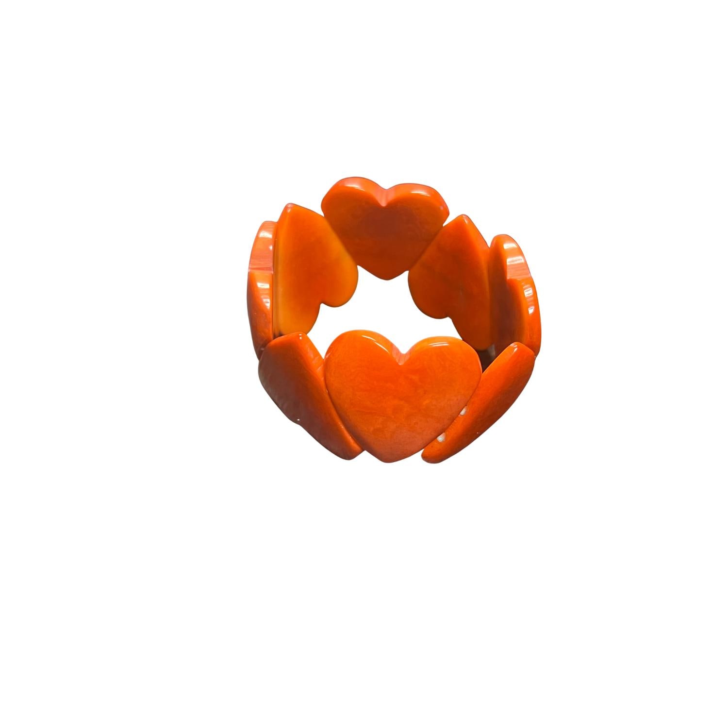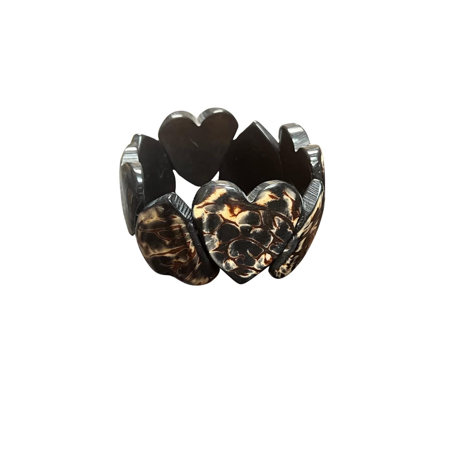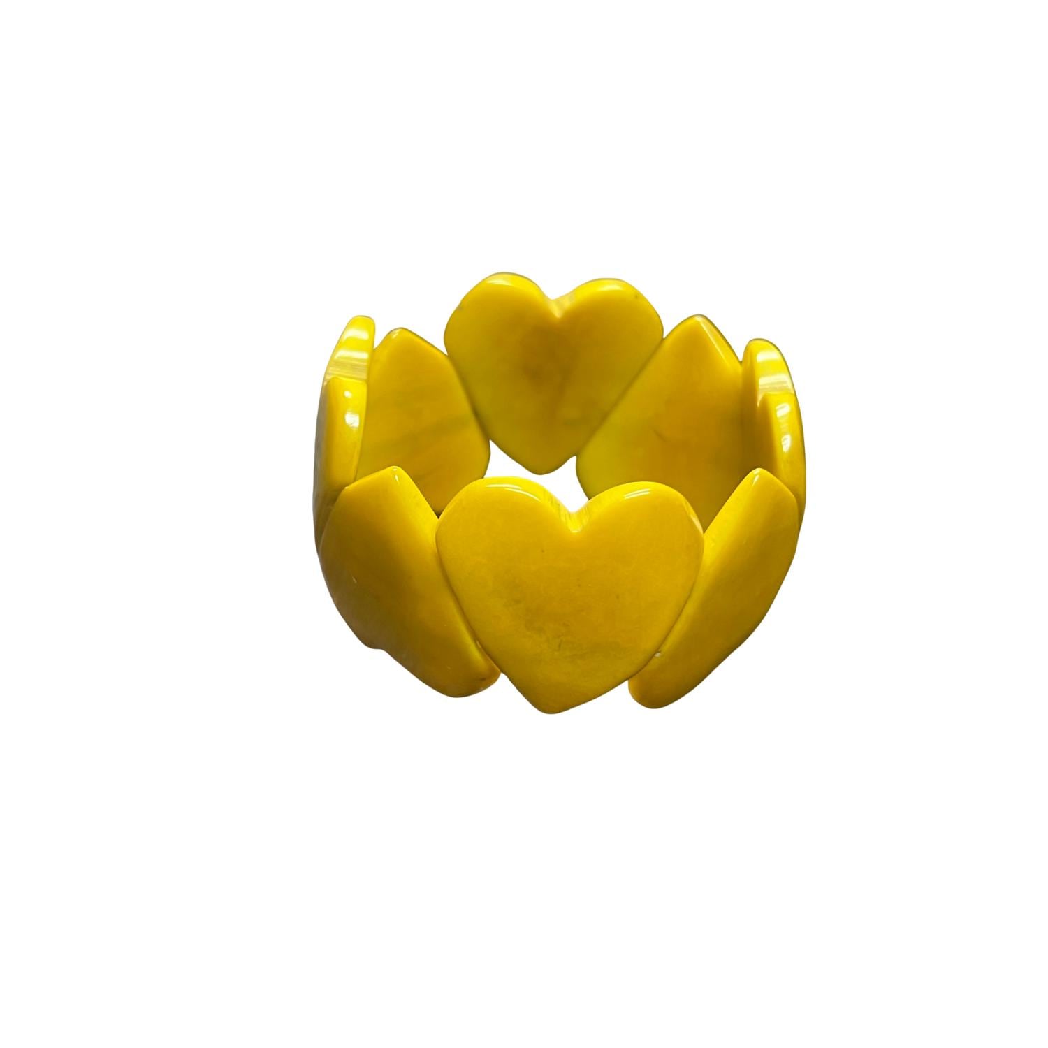 Add a pop of vibrant, sustainable style to your wardrobe with this handcrafted bracelet made from natural Tagua nuts, also known as vegetable ivory. This bold statement piece features smooth, polished heart-shaped beads in a rich hue, artfully arranged in a stretch design for easy wear and comfort.