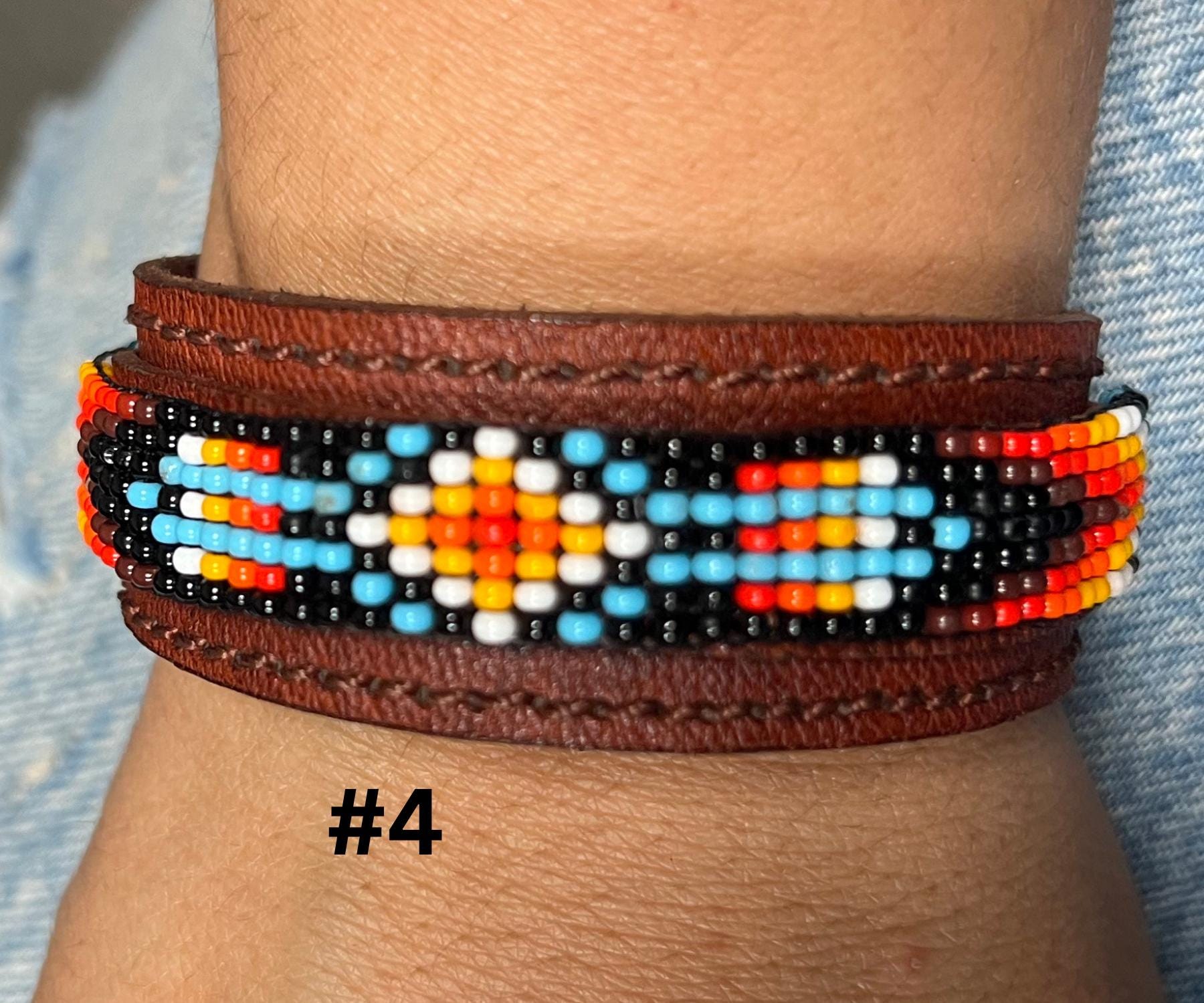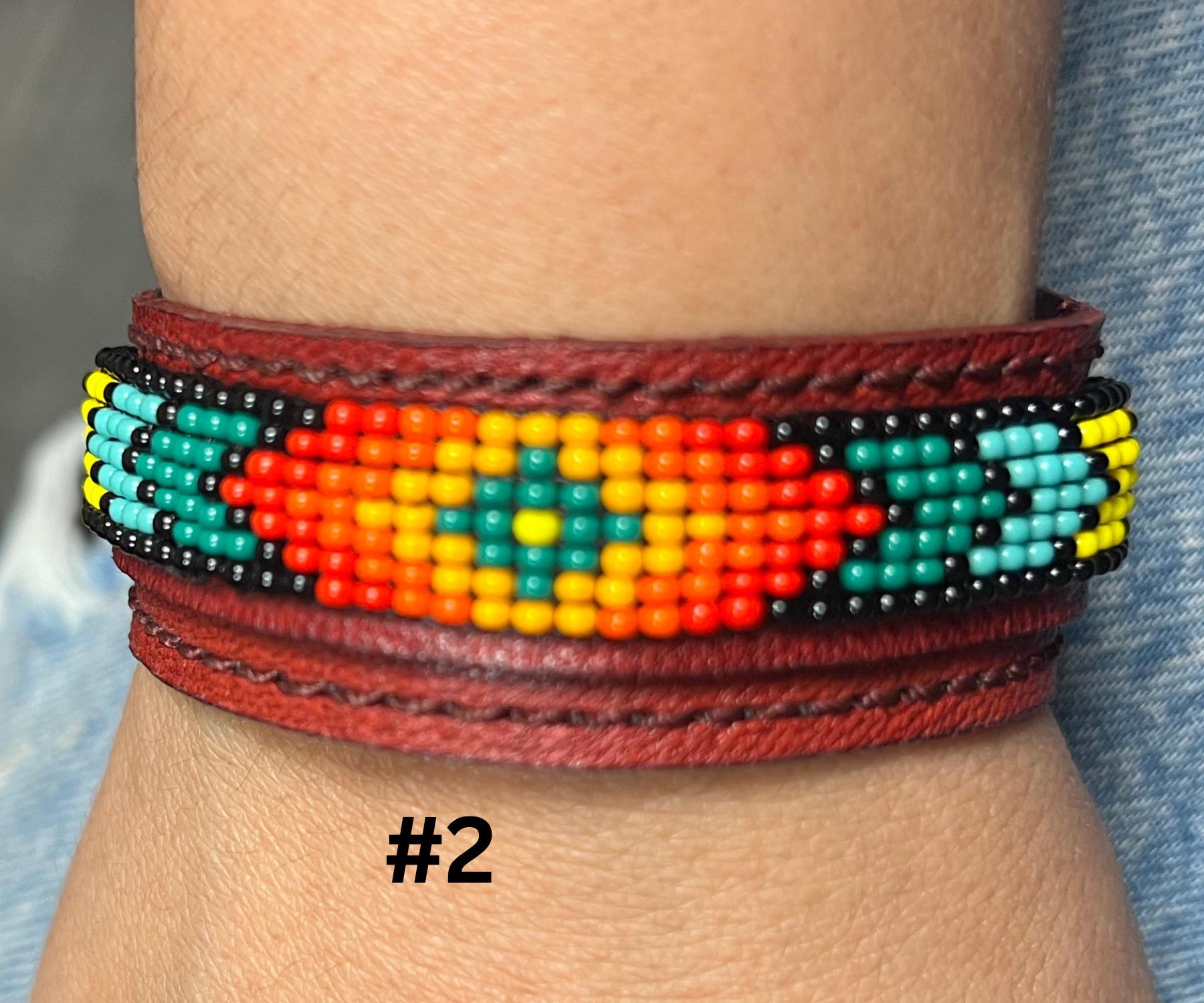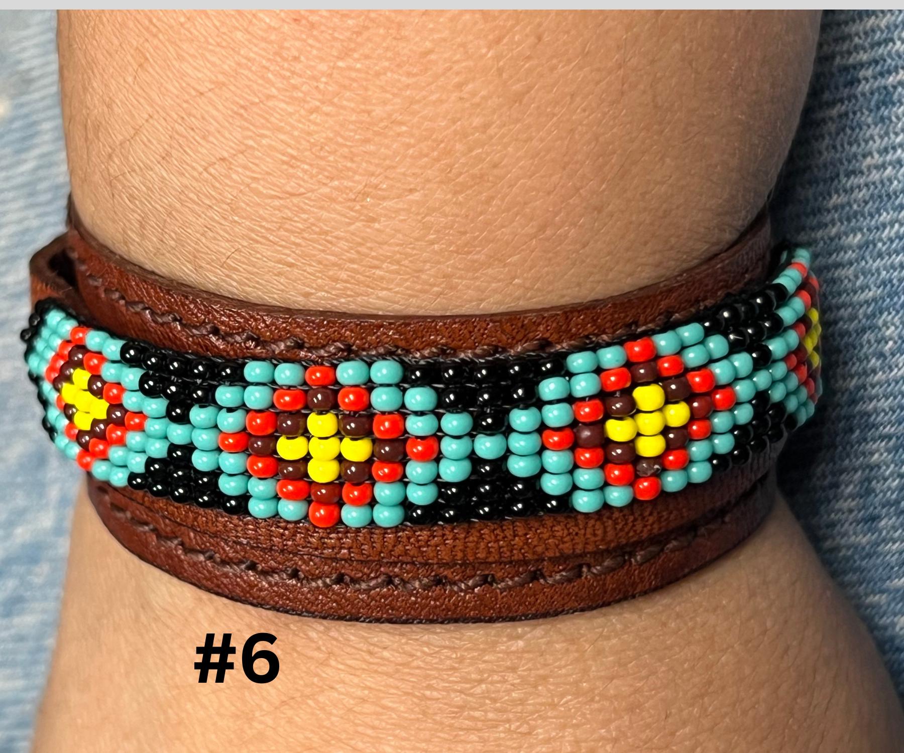 These unique accessories are made with high-quality leather and adorned with glass seed beads, creating a beautiful fusion of ethnic art and bohemian fashion. Perfect for both men and women, the adjustable design ensures a comfortable fit for all wrist sizes.