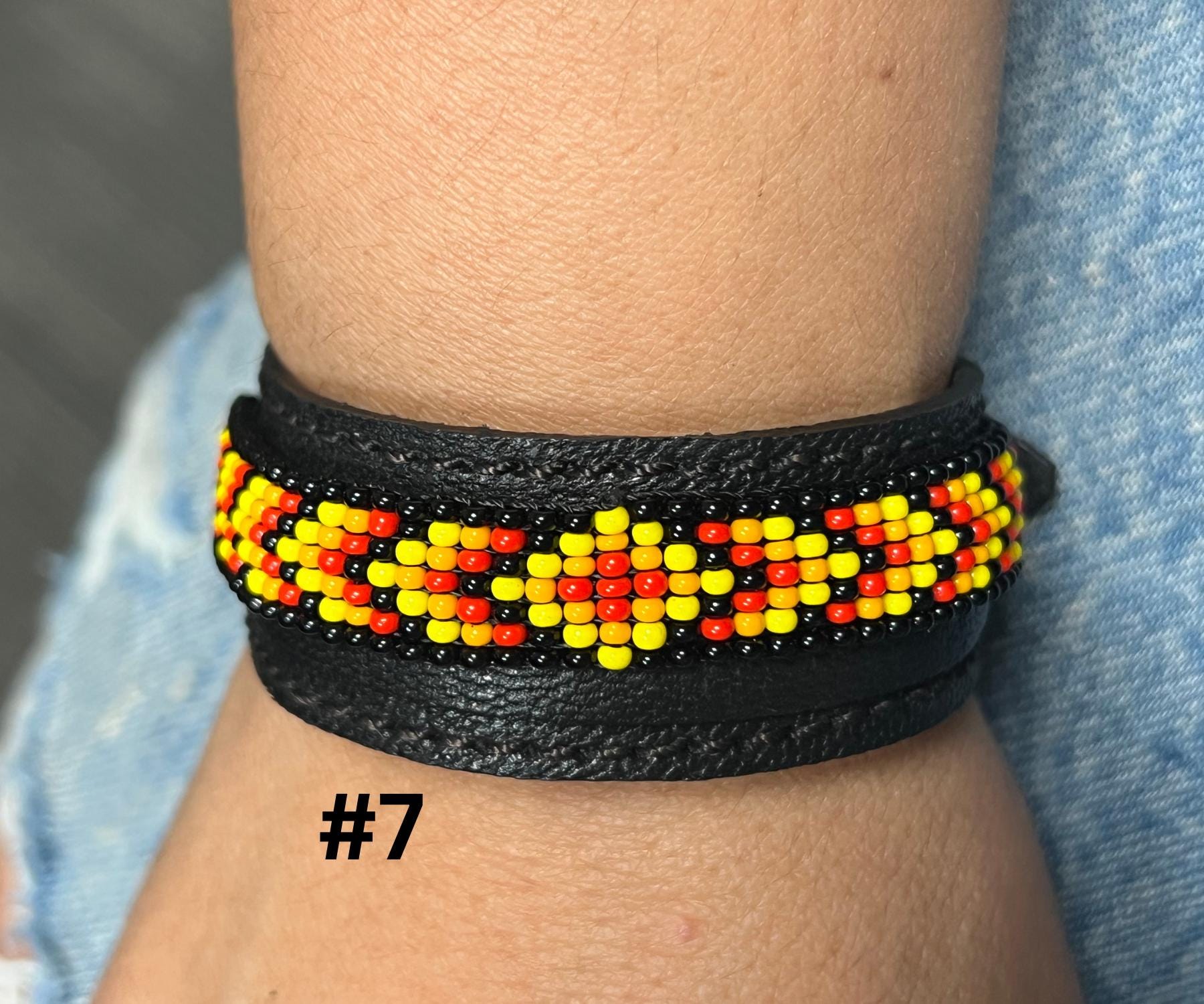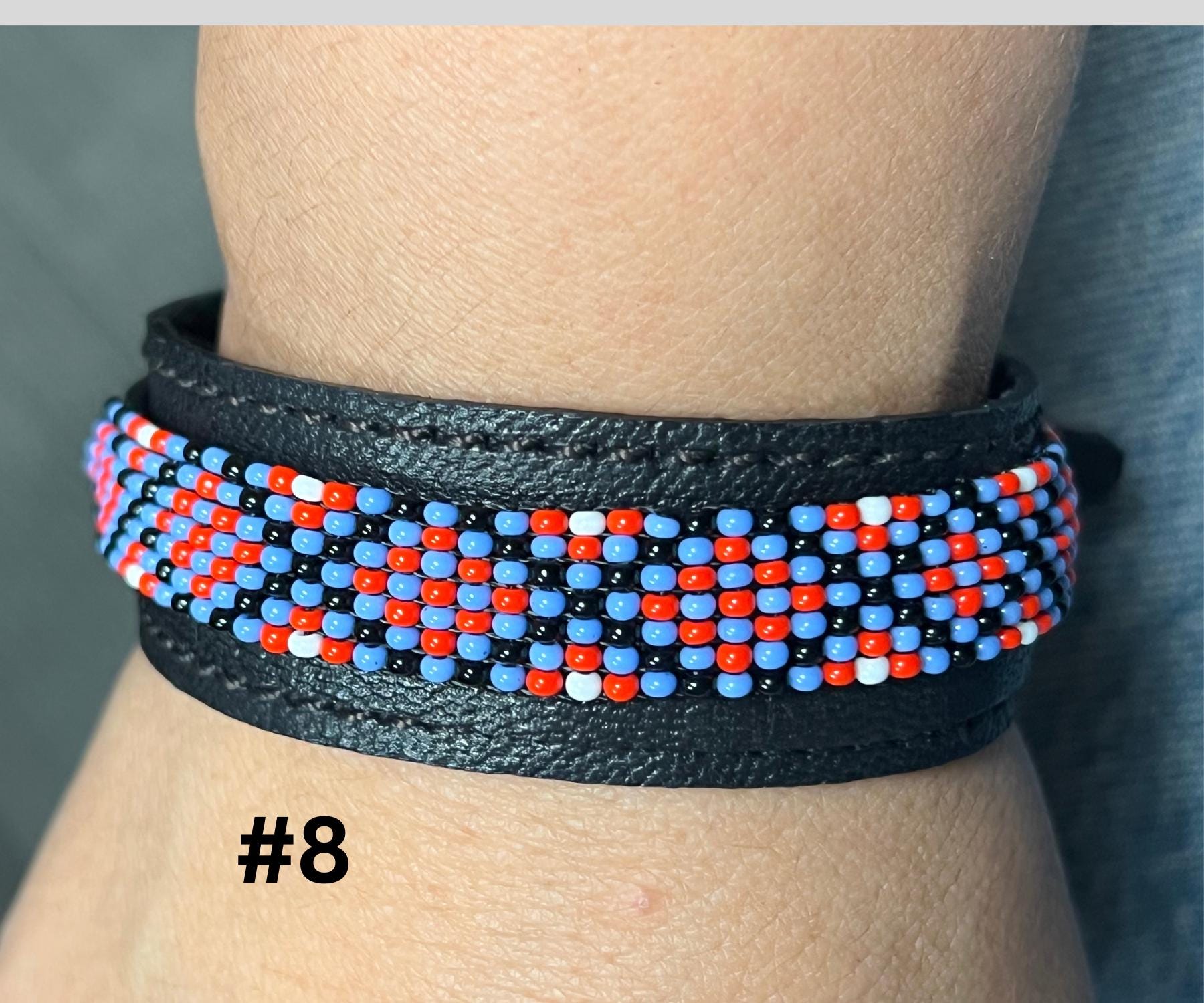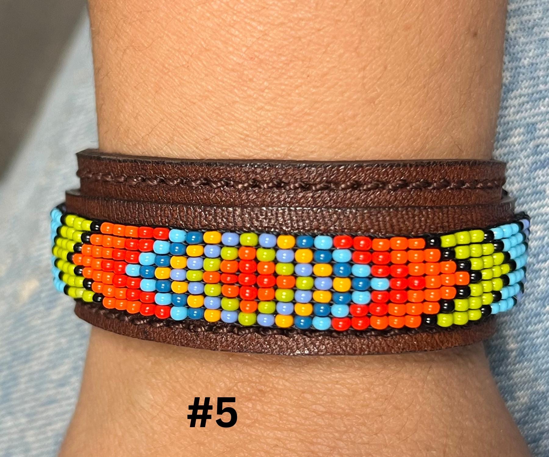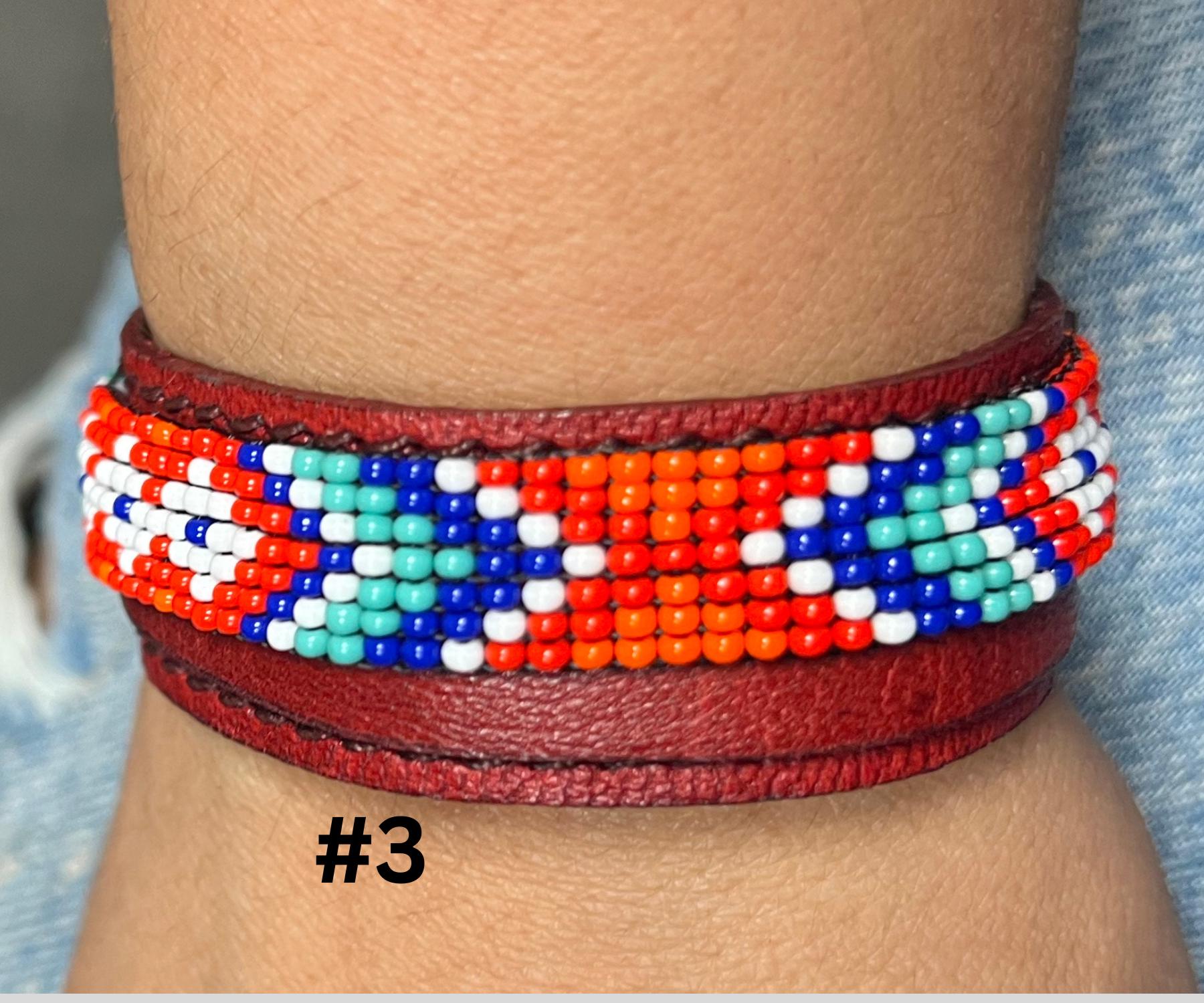 These unique accessories are made with high-quality leather and adorned with glass seed beads, creating a beautiful fusion of ethnic art and bohemian fashion. Perfect for both men and women, the adjustable design ensures a comfortable fit for all wrist sizes.