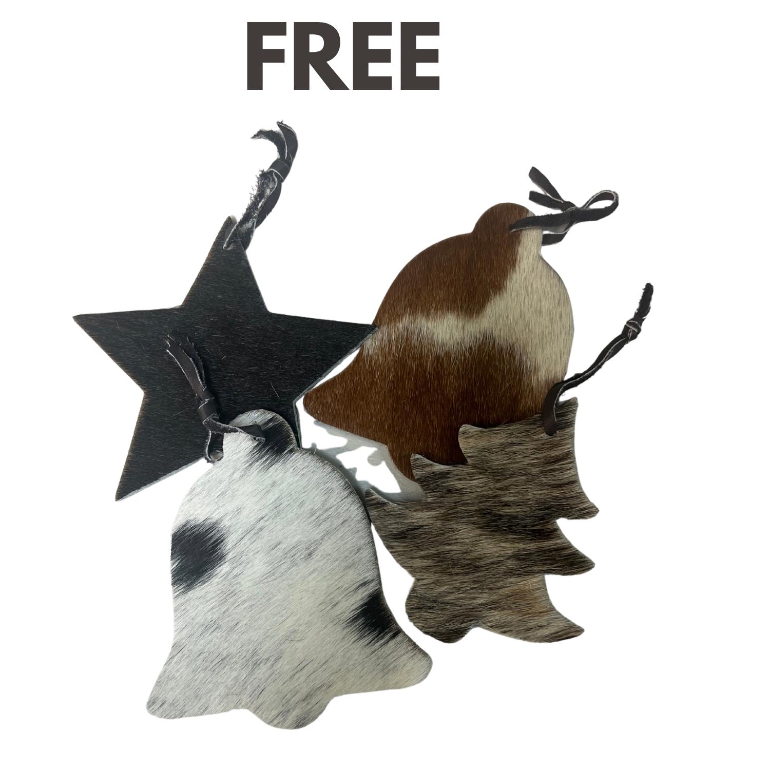 BUY ONE LARGE STOCKING, GET A SET OF DOUBLE-SIDED COWHIDE ORNAMENTS