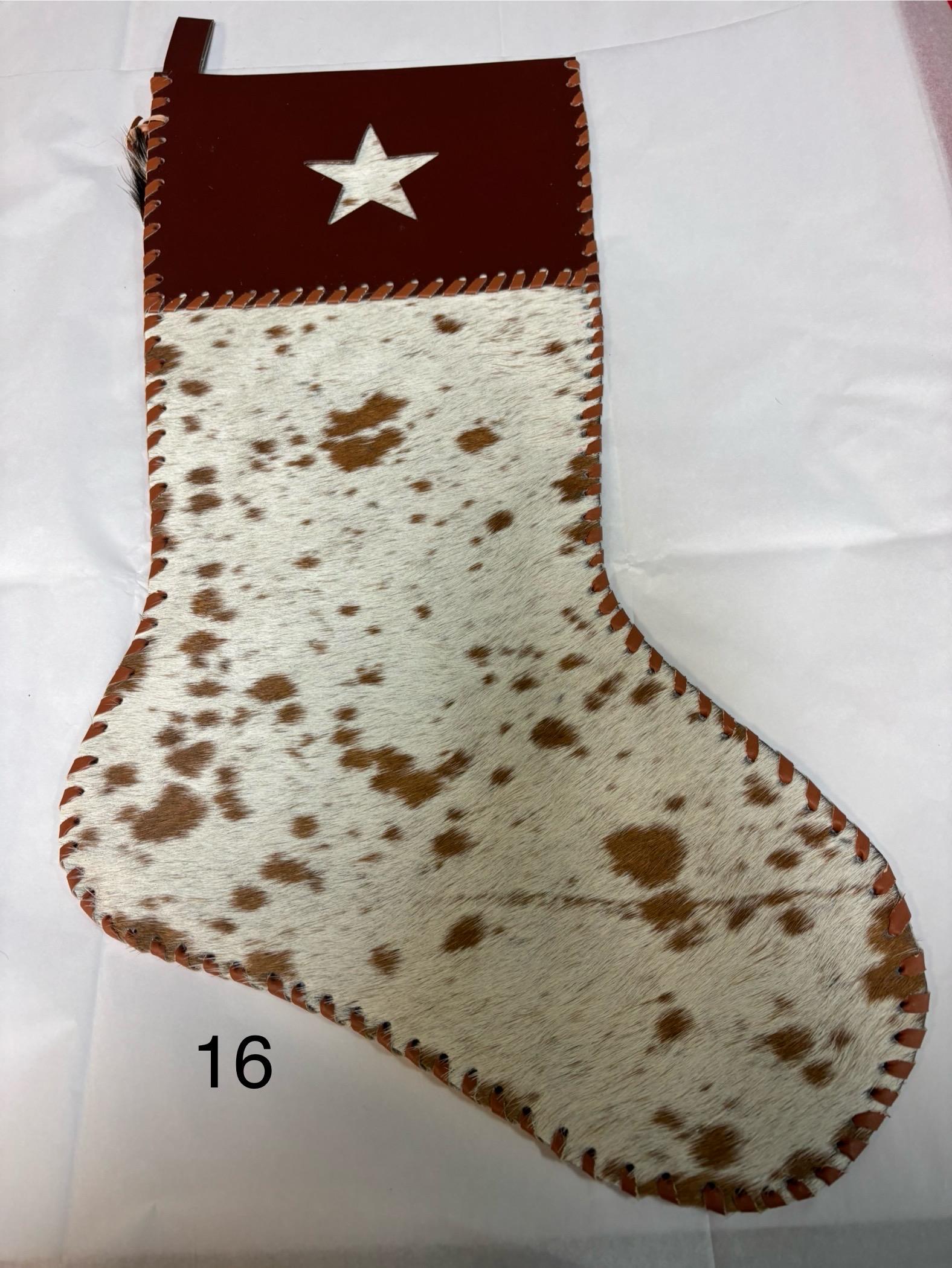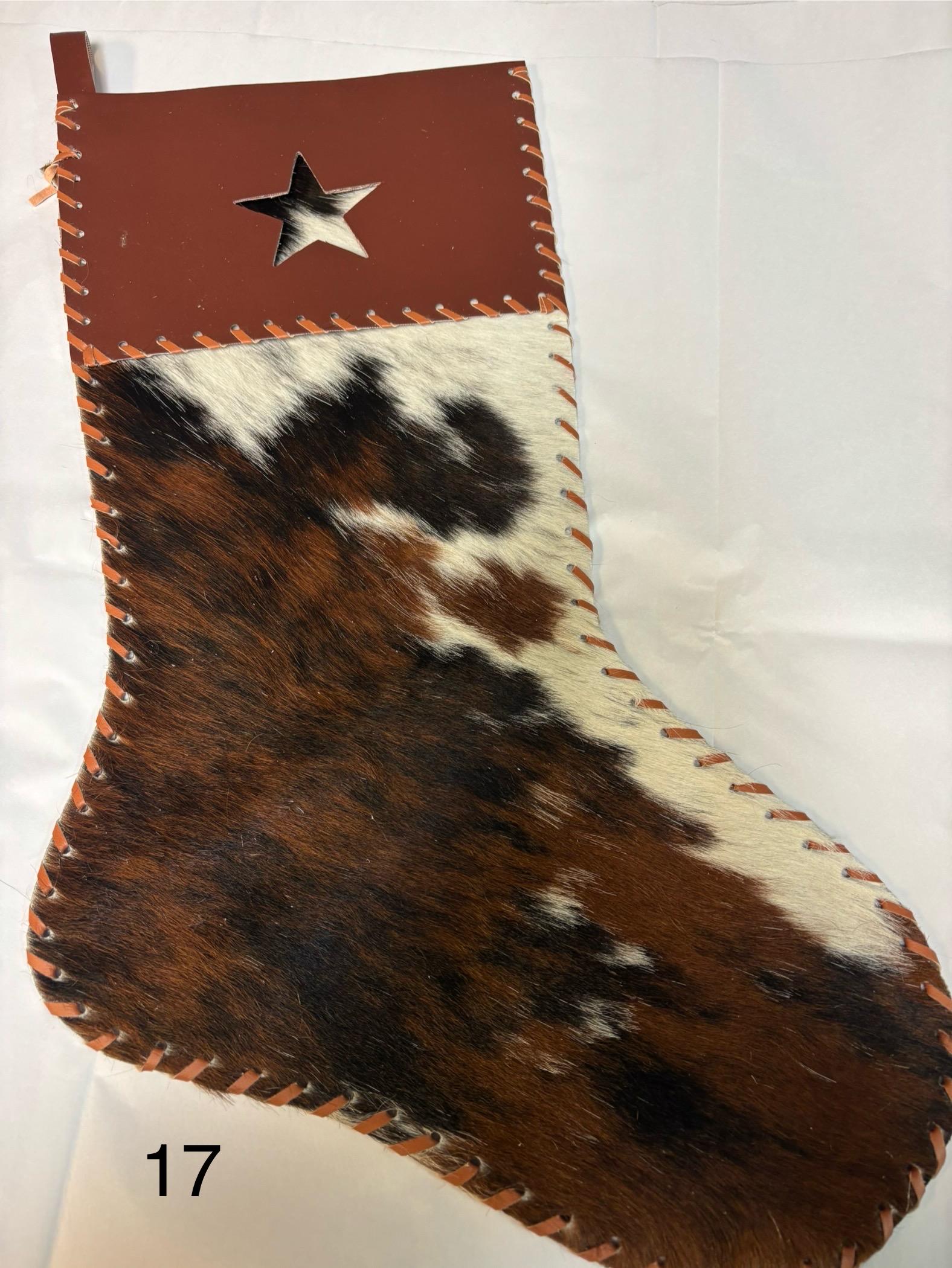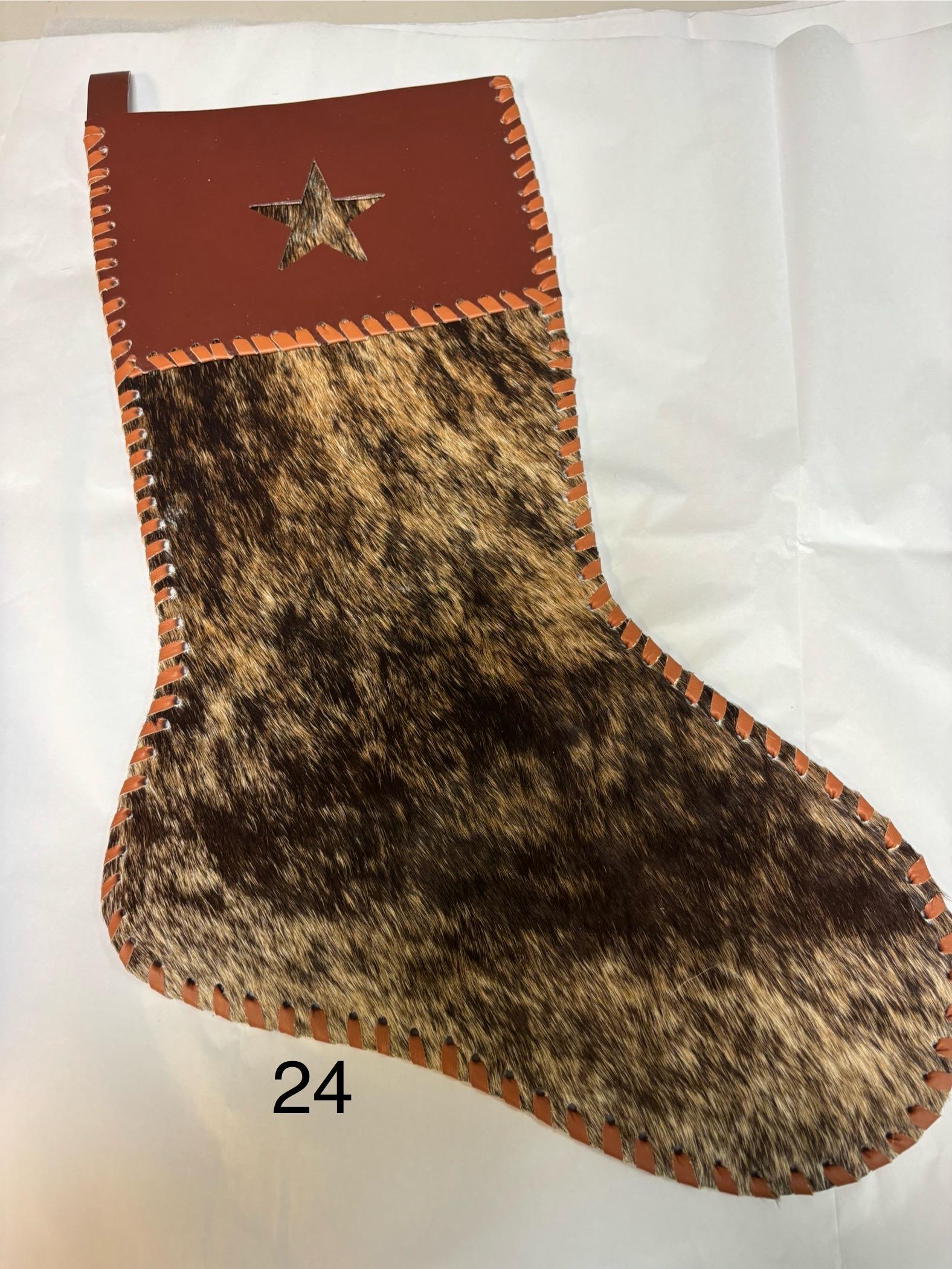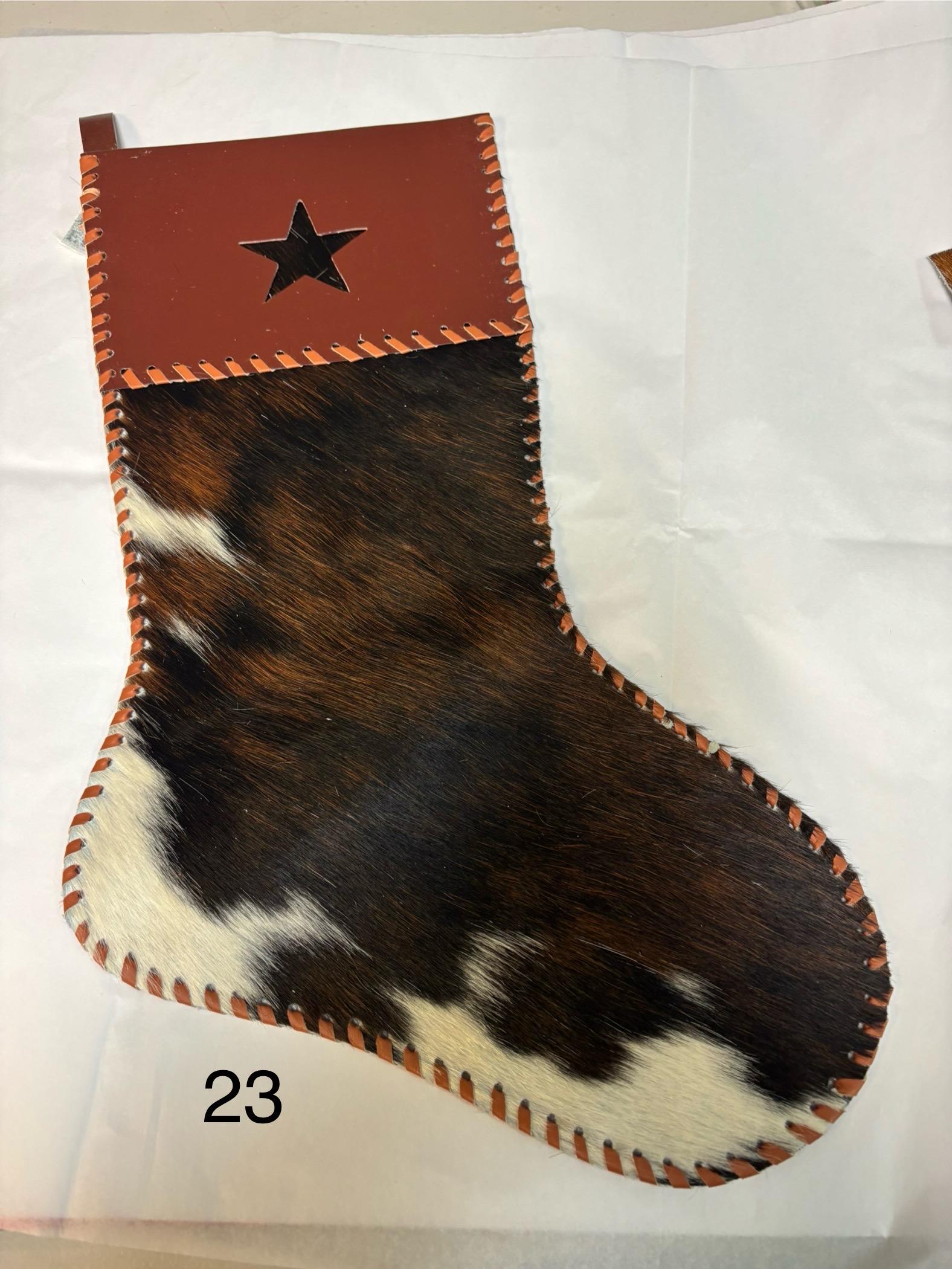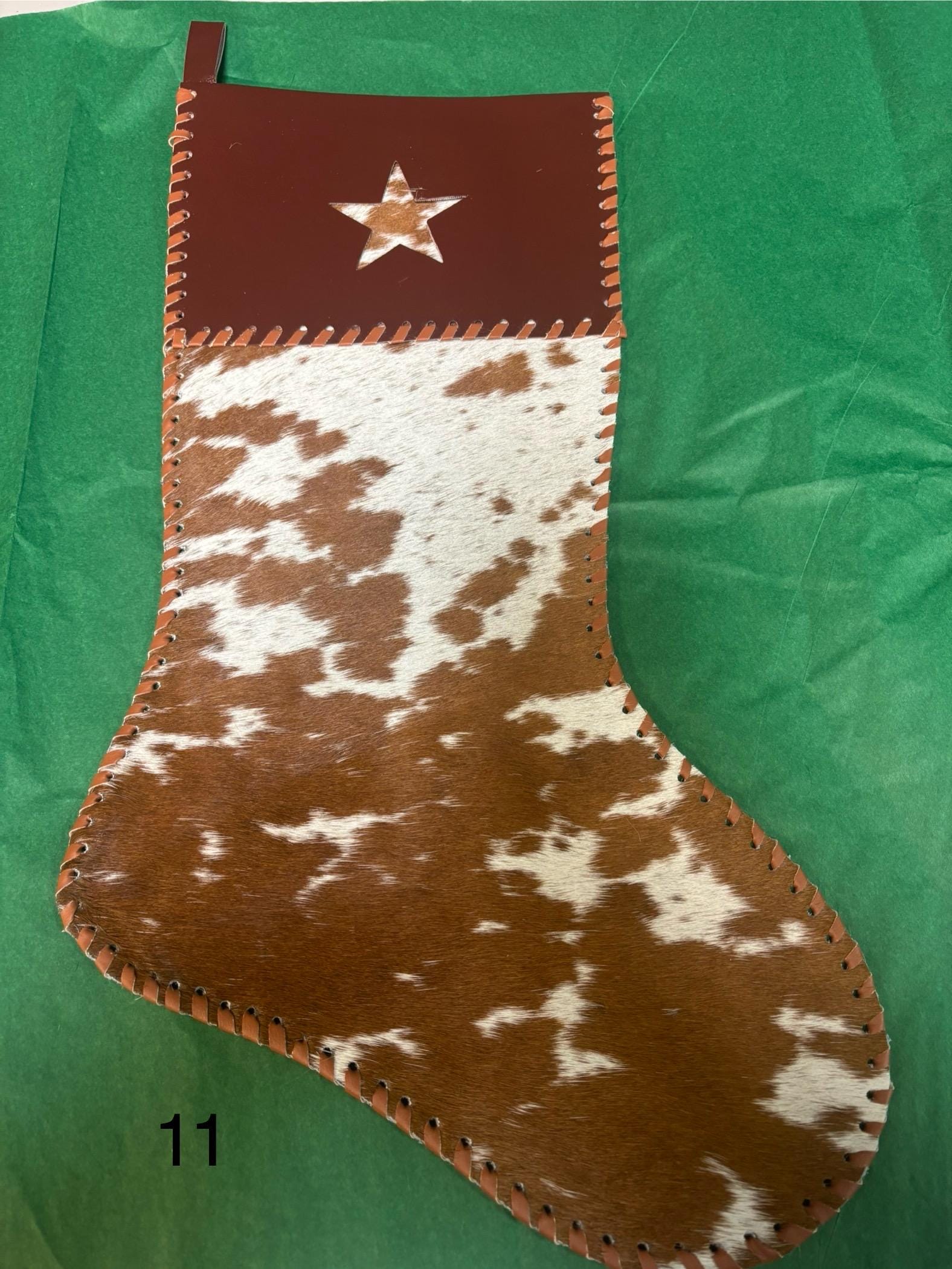 Elevate your holiday décor with our exquisite Cowhide and Leather Christmas Stocking. Crafted with precision and care, each stocking is a perfect blend of top-quality cowhide and leather trim, ensuring a rustic yet sophisticated touch to your festive celebrations.