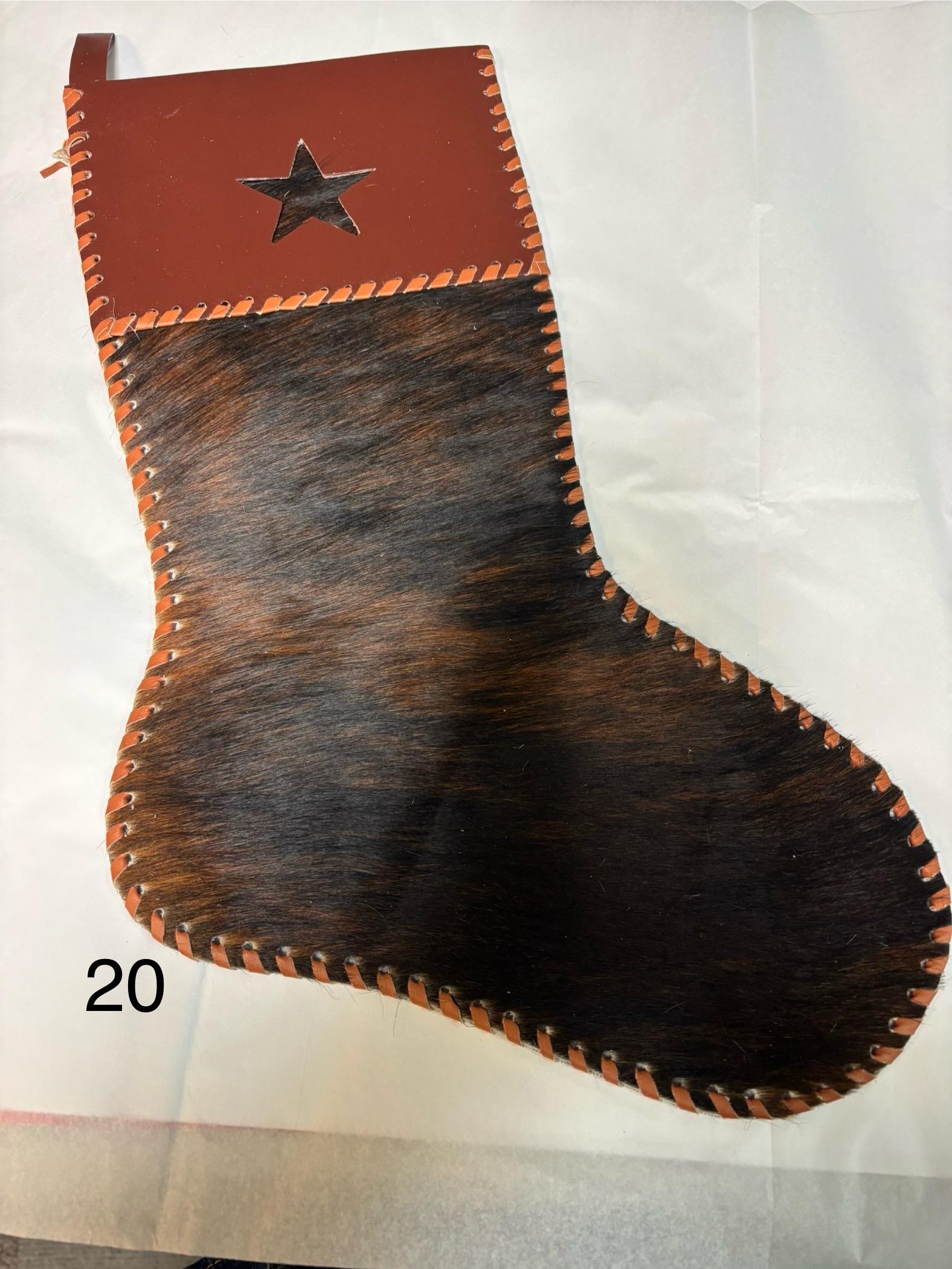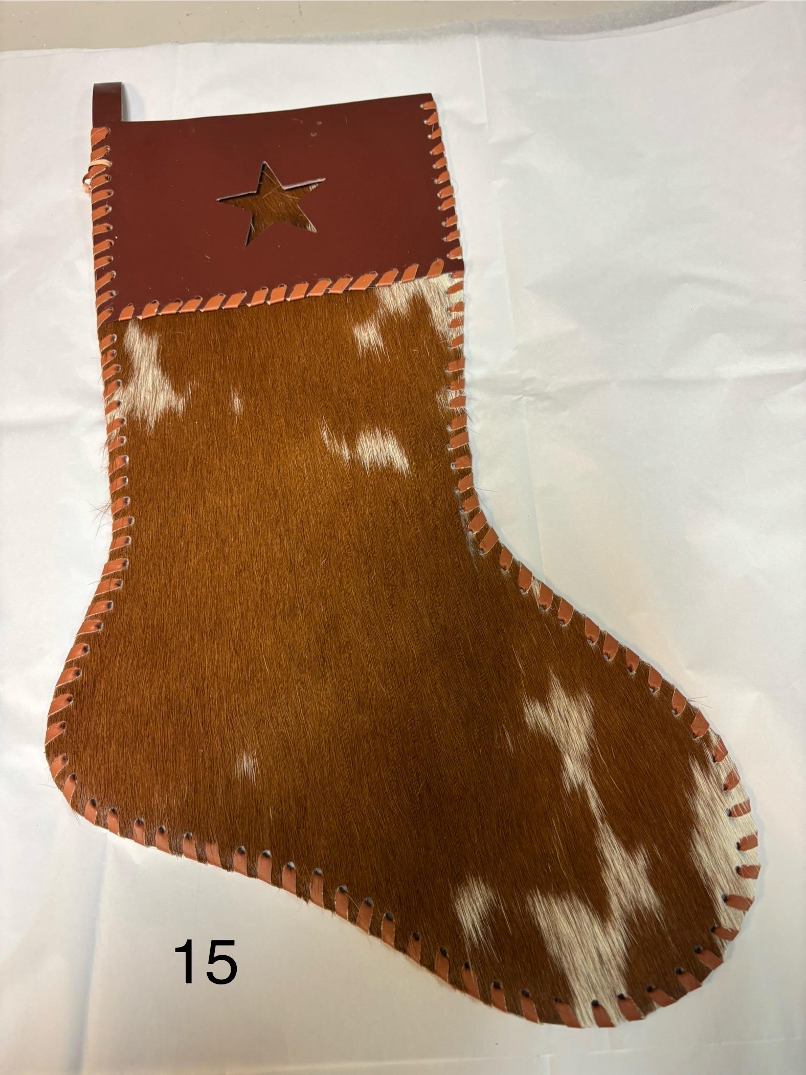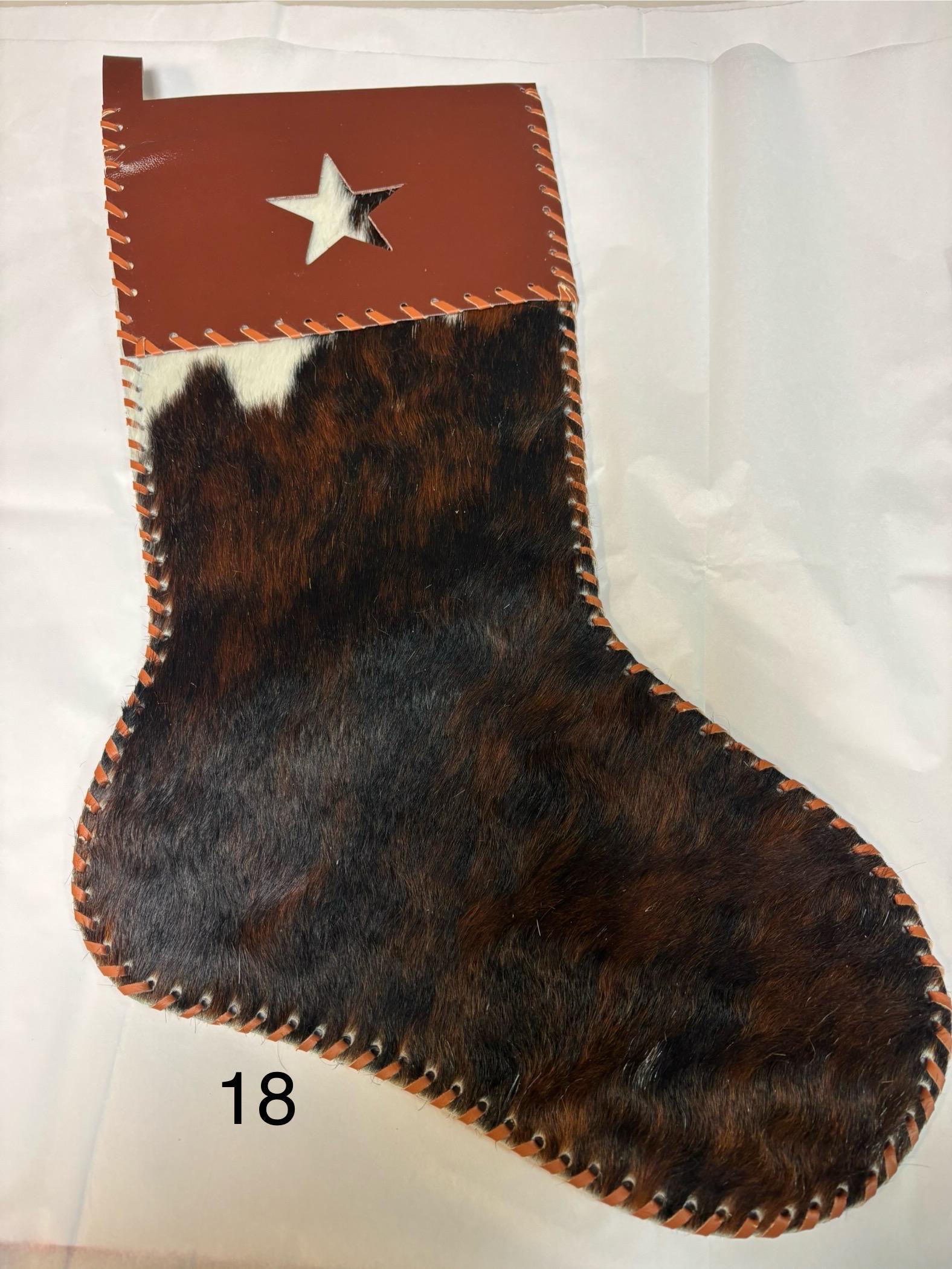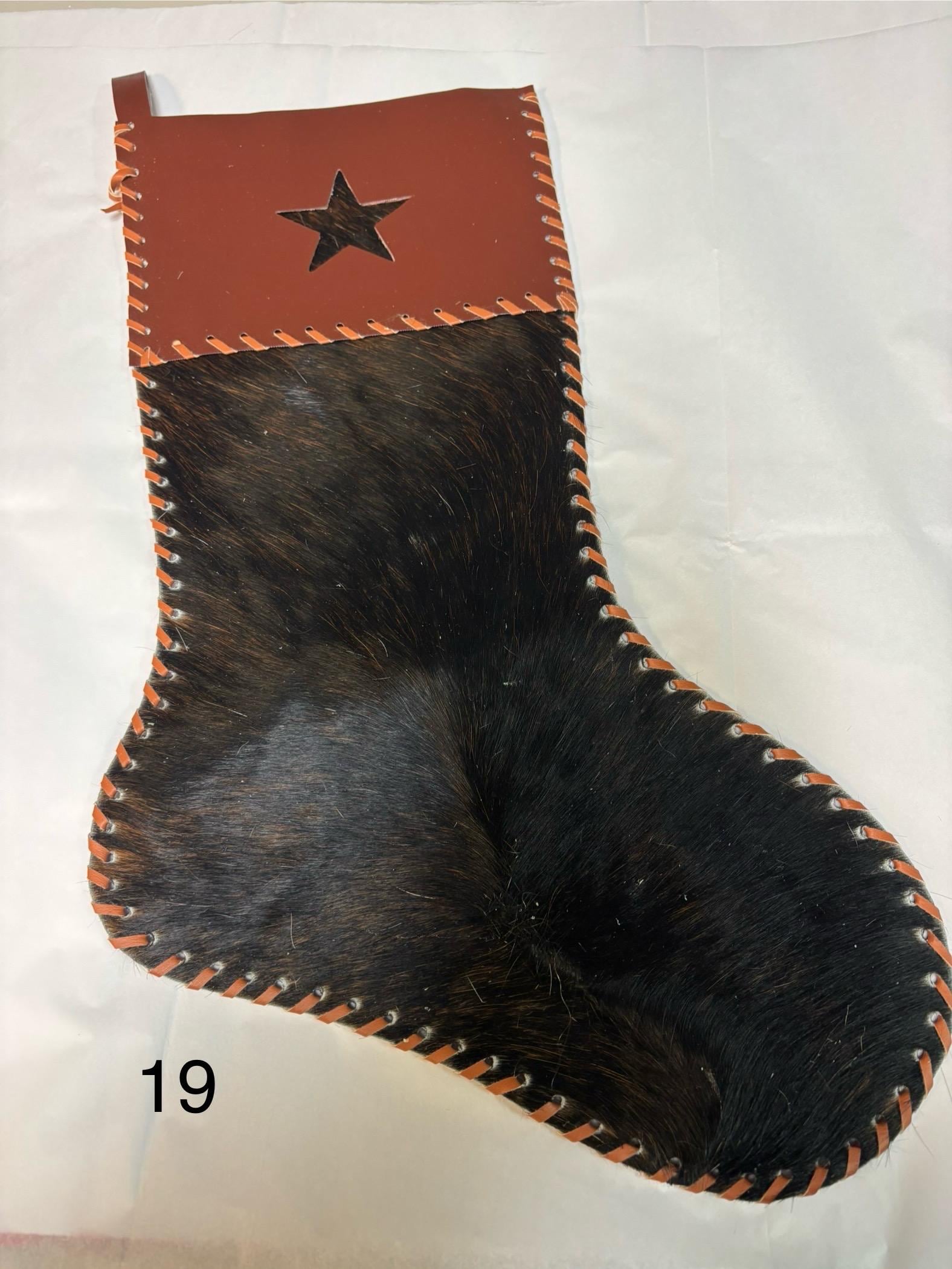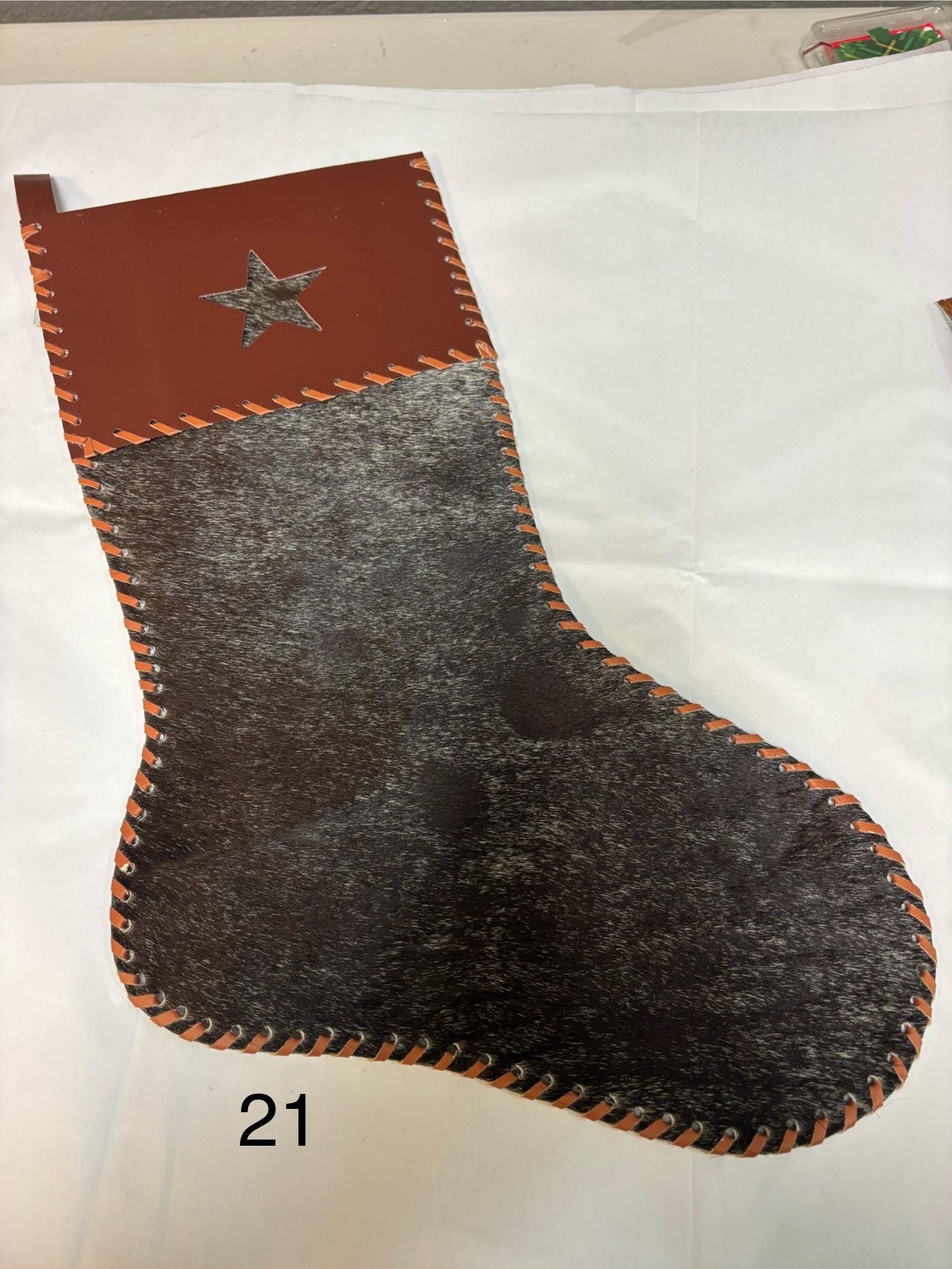 Elevate your holiday décor with our exquisite Cowhide and Leather Christmas Stocking. Crafted with precision and care, each stocking is a perfect blend of top-quality cowhide and leather trim, ensuring a rustic yet sophisticated touch to your festive celebrations.