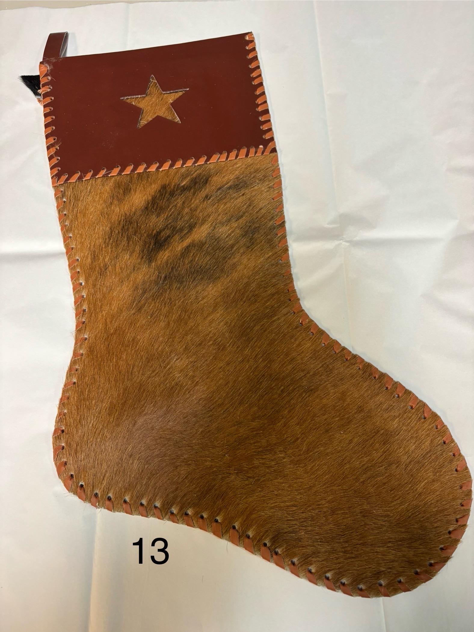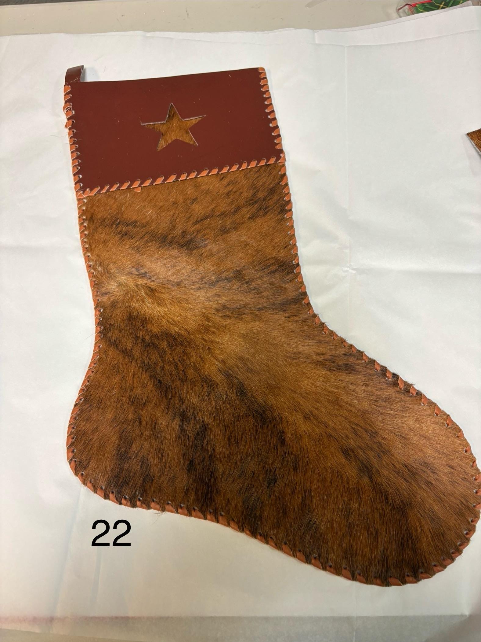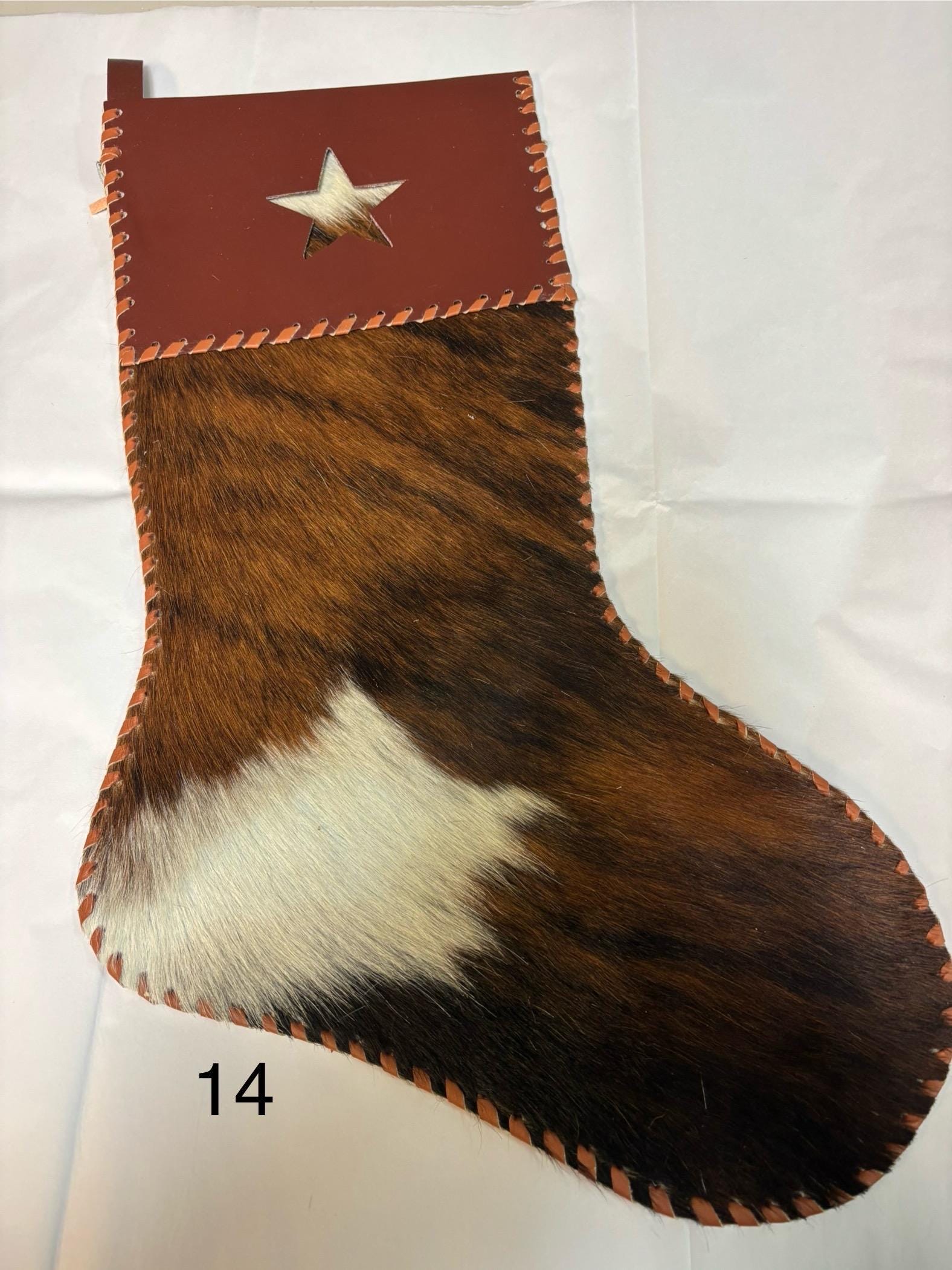 It's important to note that we exclusively use genuine Grade A Brazilian cowhides for our stockings. These premium materials may feature natural wear marks, adding character and authenticity to your stocking. These marks may include signs of the animal's life, such as grazing or rubbing against a fence, further emphasizing the natural beauty of the cowhide.