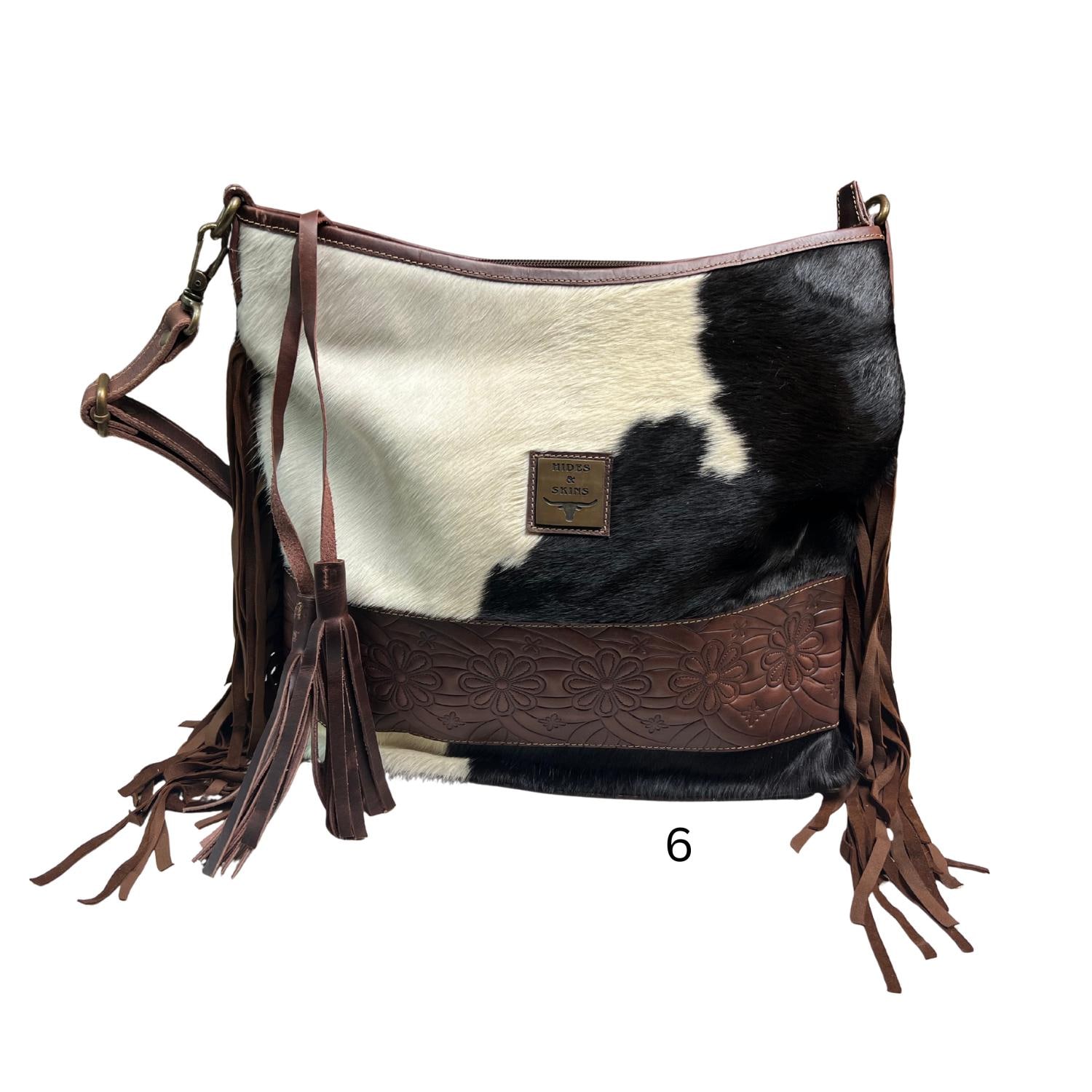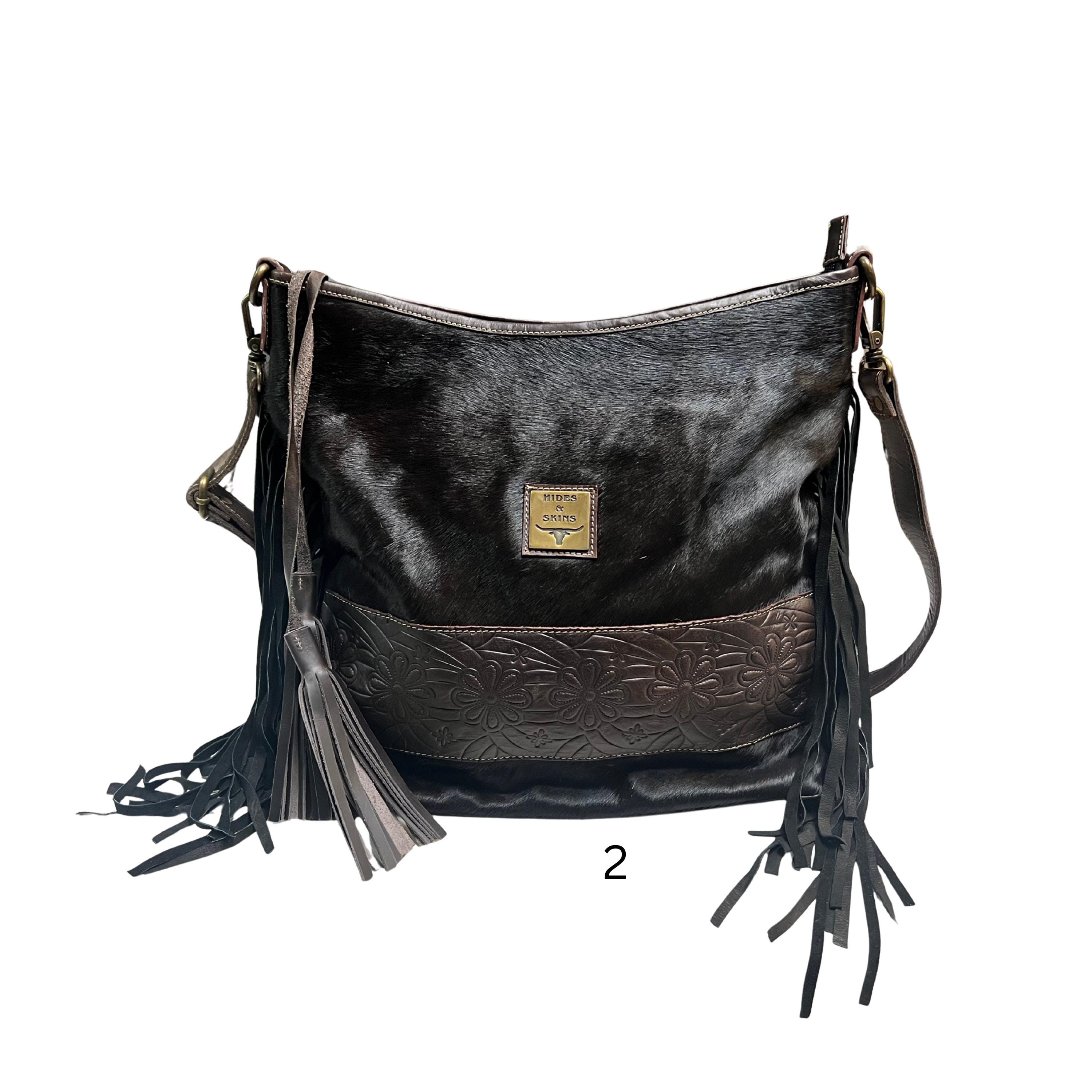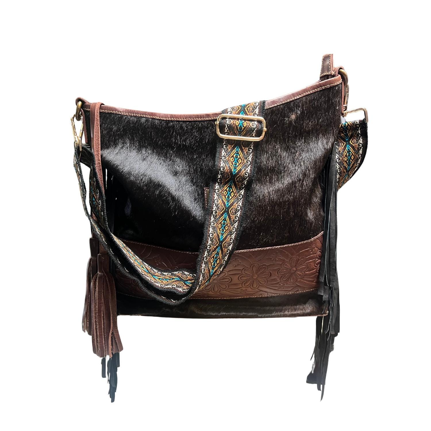 Crossbody Cowhide Purse. with LEATHER and Fringe Large with Extra bag strap