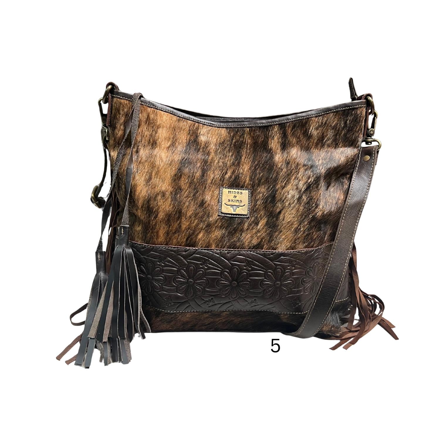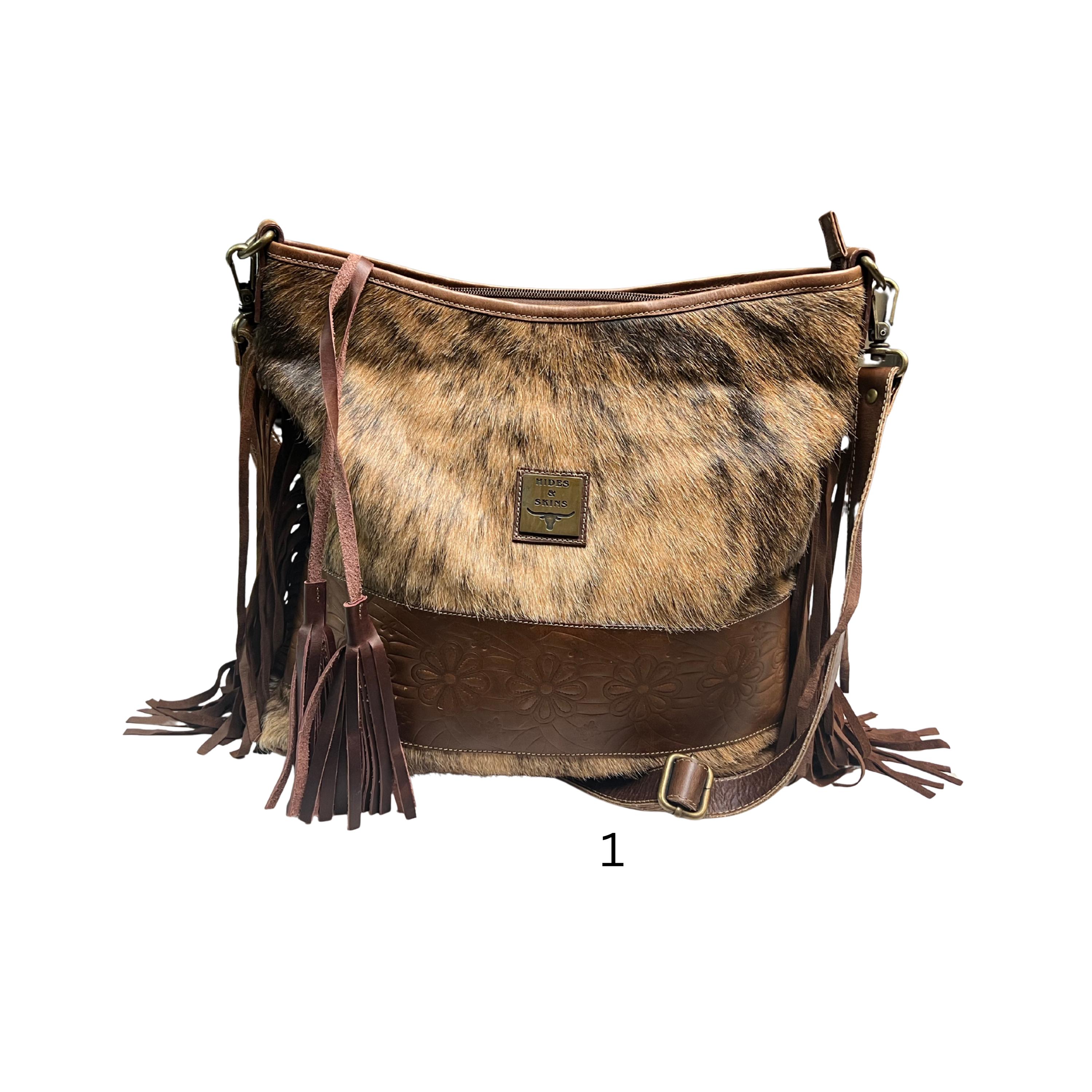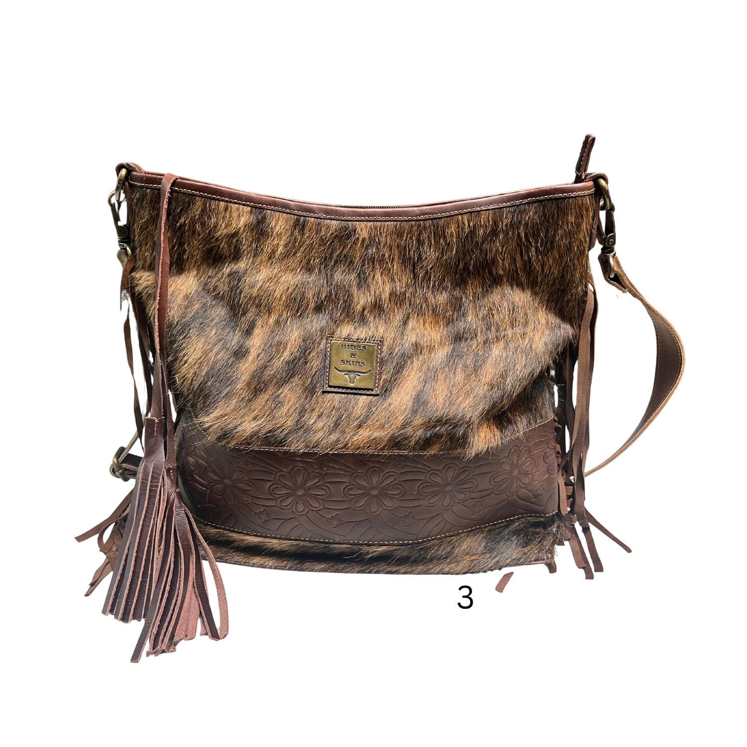 Crossbody Cowhide Purse. with LEATHER and Fringe Large with Extra bag strap