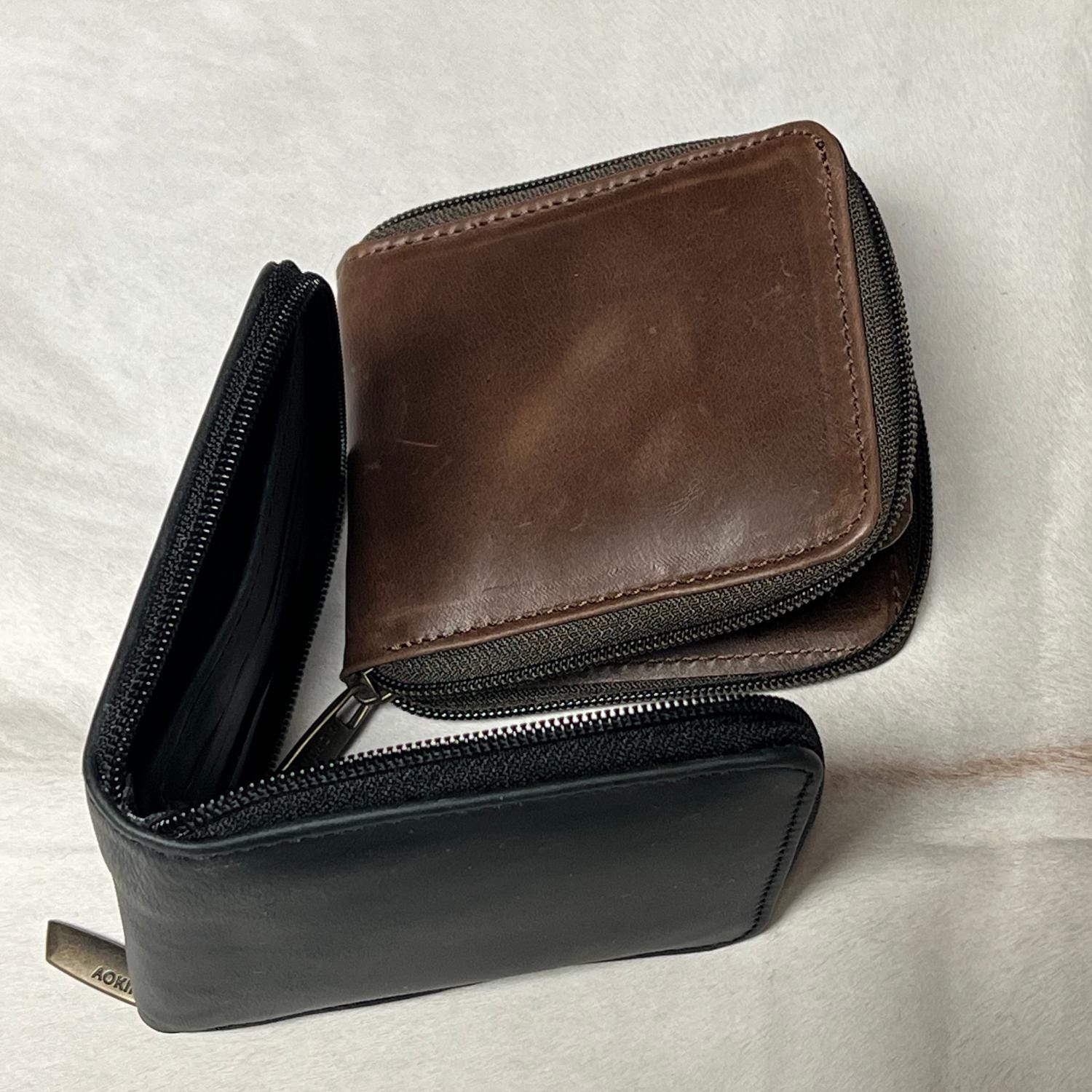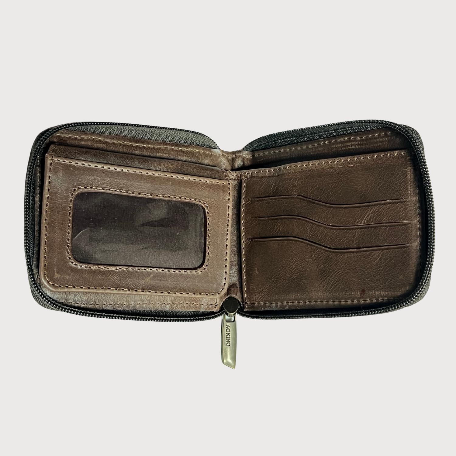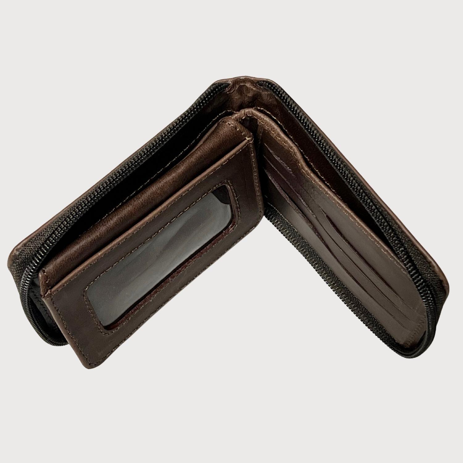 Genuine Leather Zipper Wallet in Brown and Black