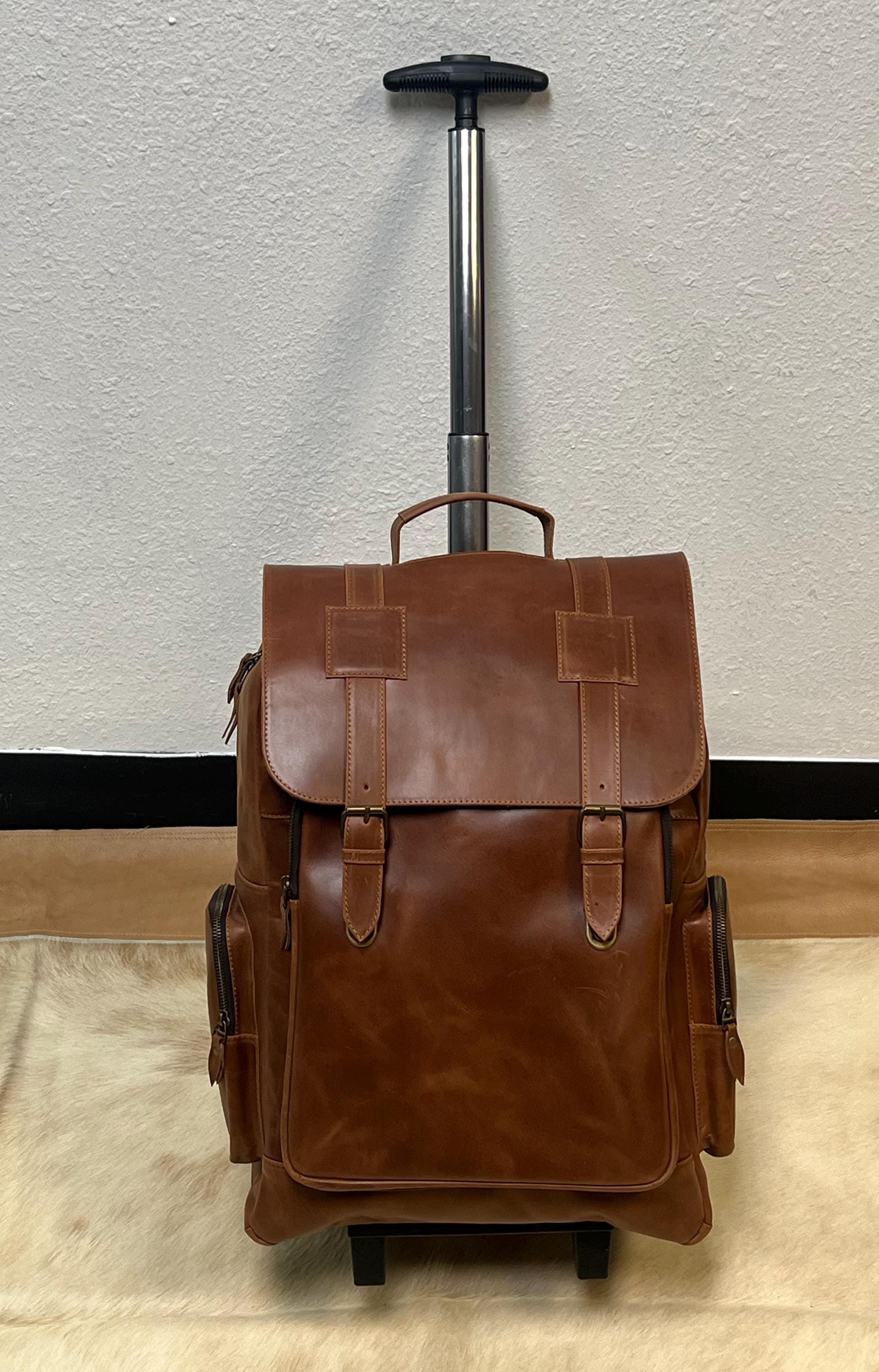 Handcrafted Full-Grain Leather Rolling Travel Bag,