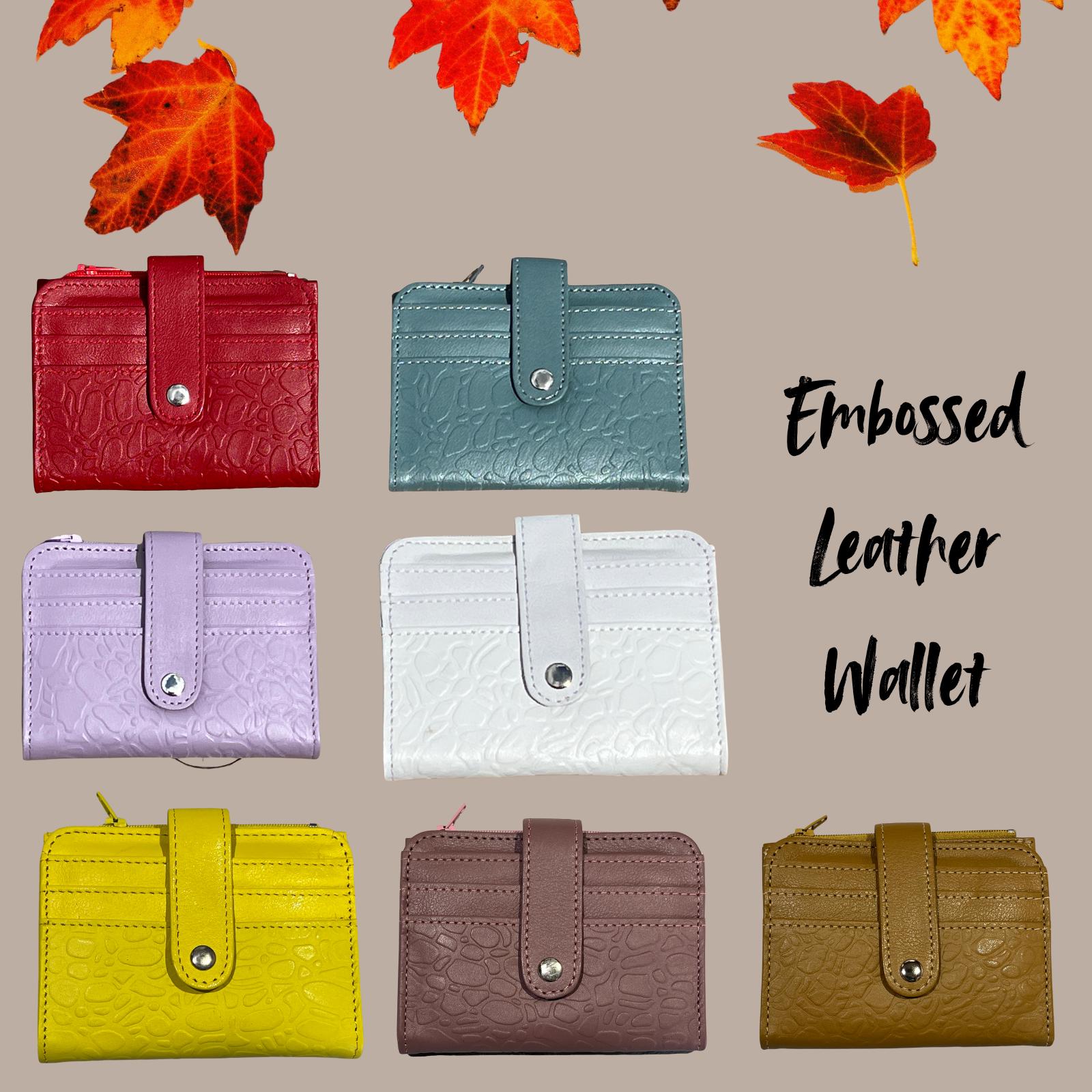 Embossed Leather Bifold Wallet: Women's Clutch with Coin Pocket