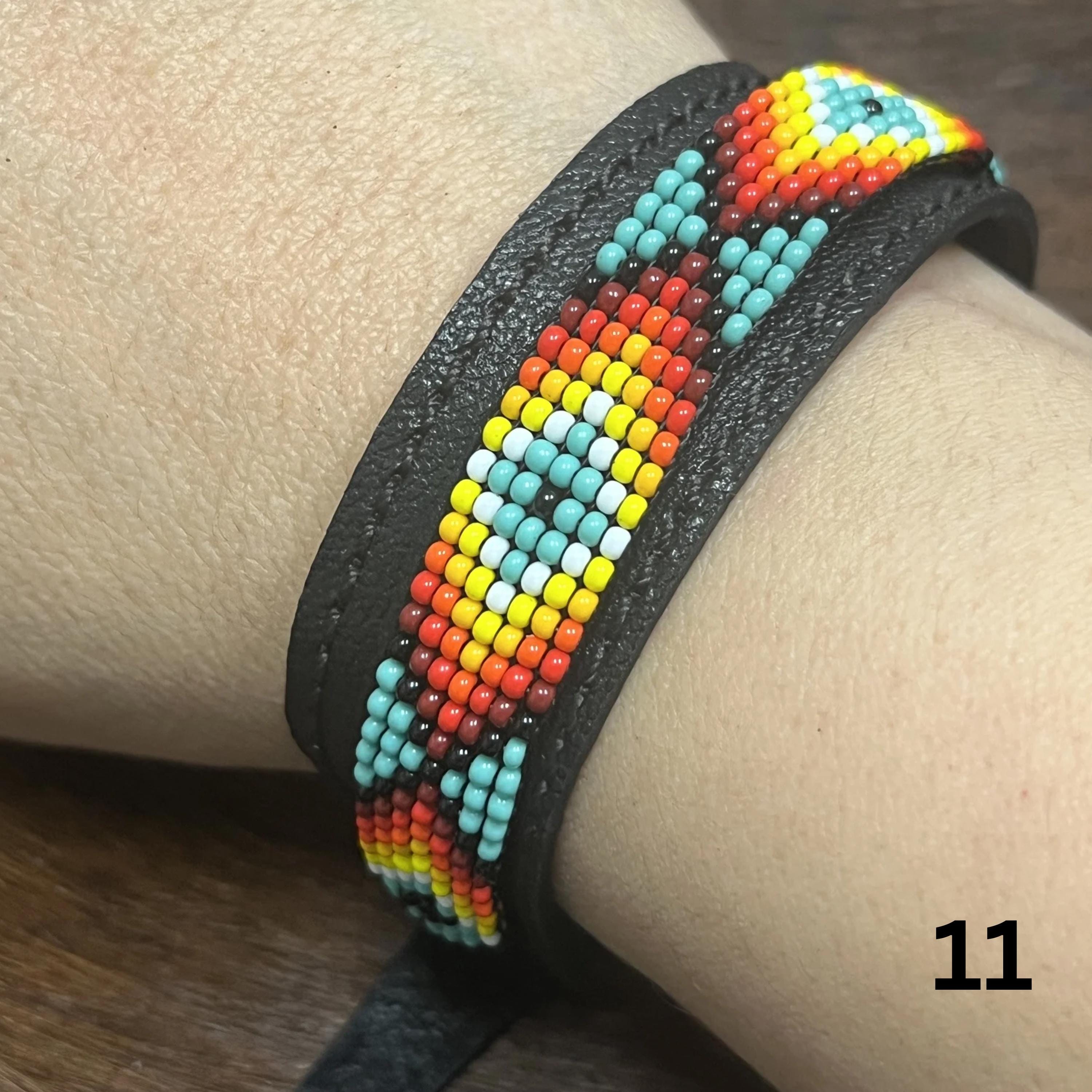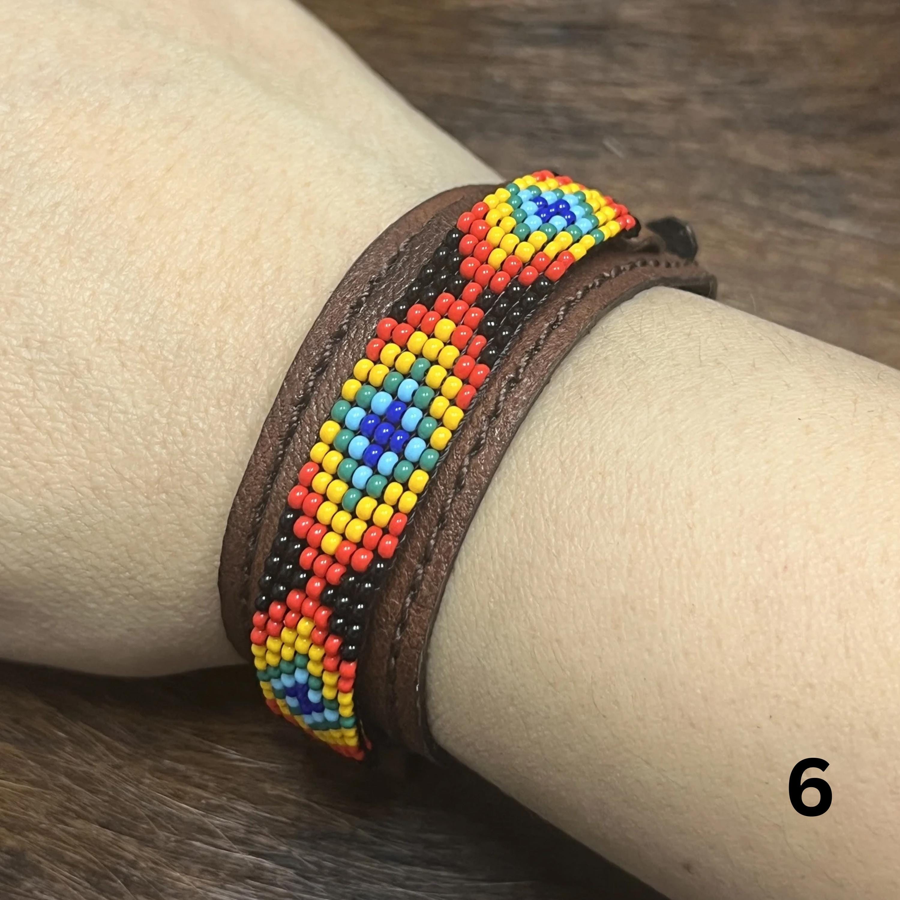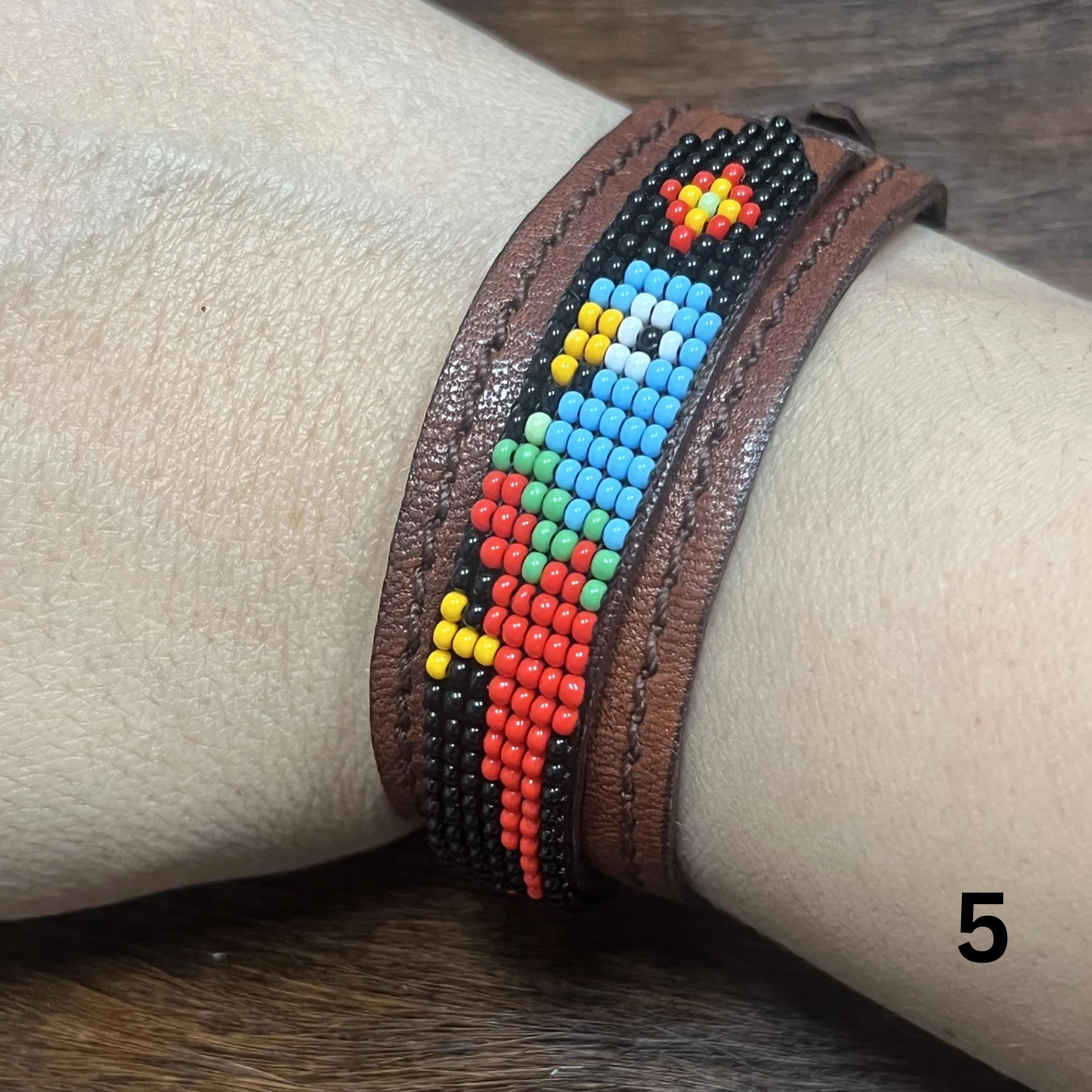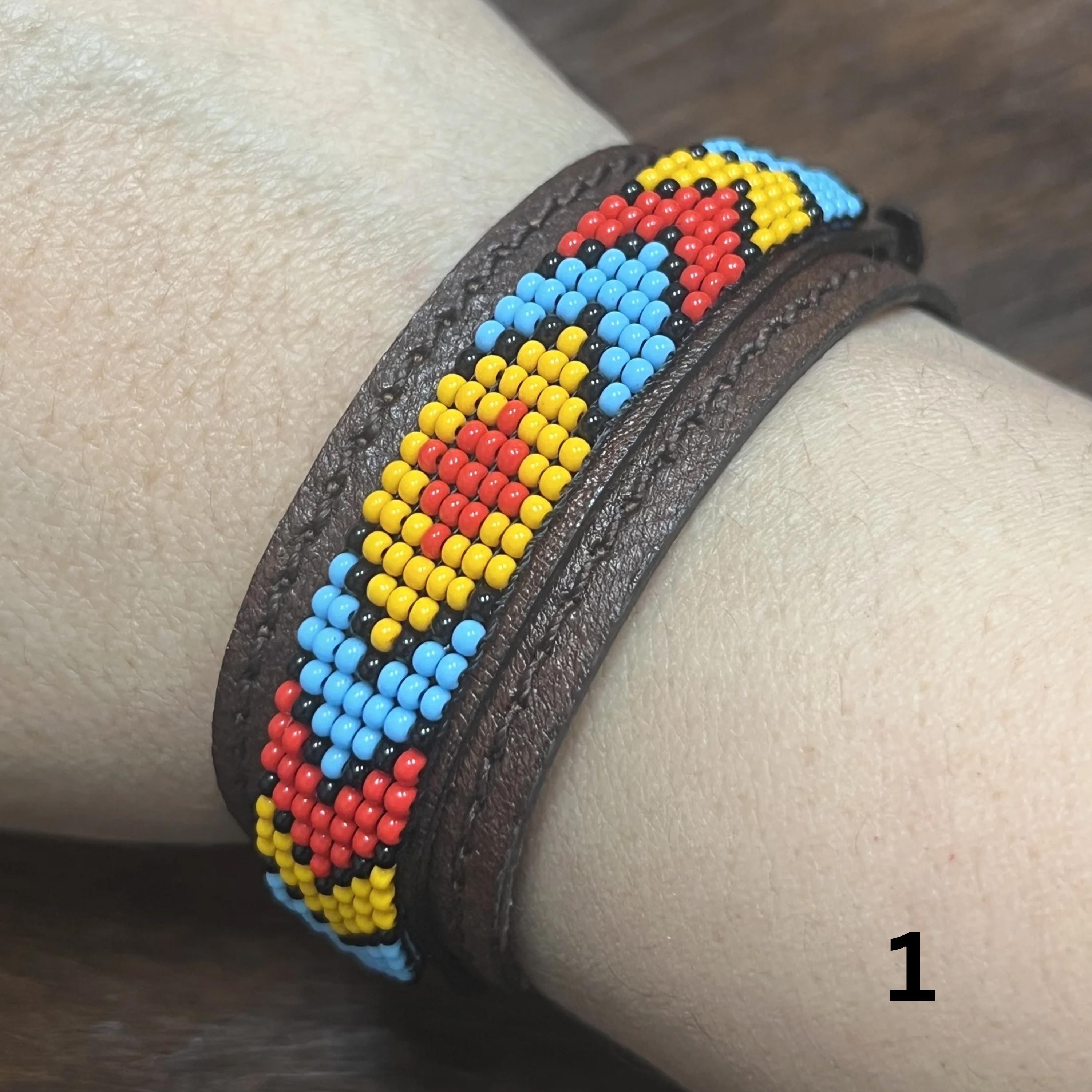 These unique accessories are made with high-quality leather and adorned with glass seed beads, creating a beautiful fusion of ethnic art and bohemian fashion. Perfect for both men and women, the adjustable design ensures a comfortable fit for all wrist sizes.
