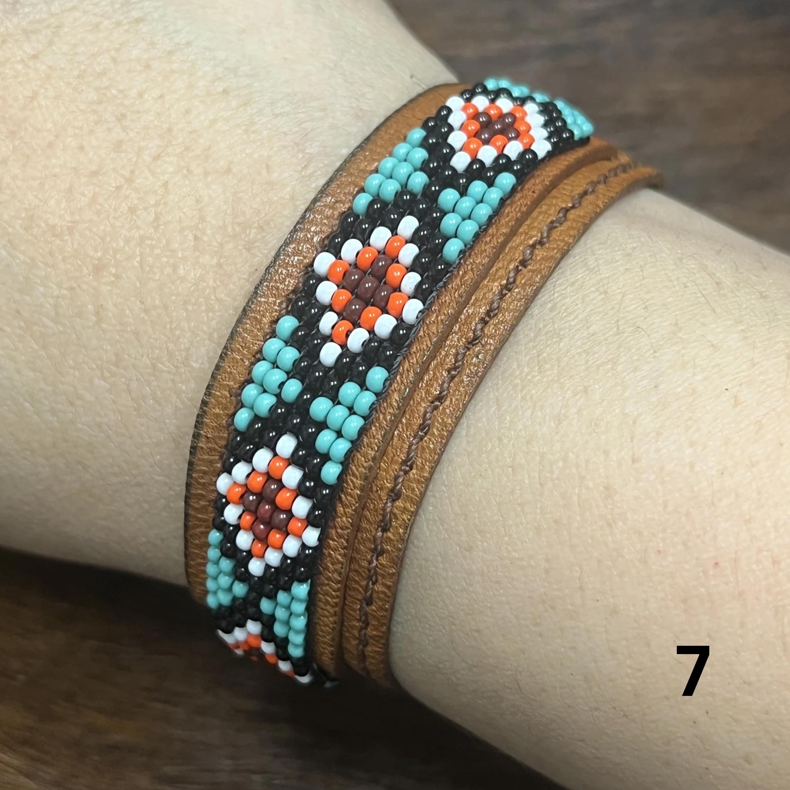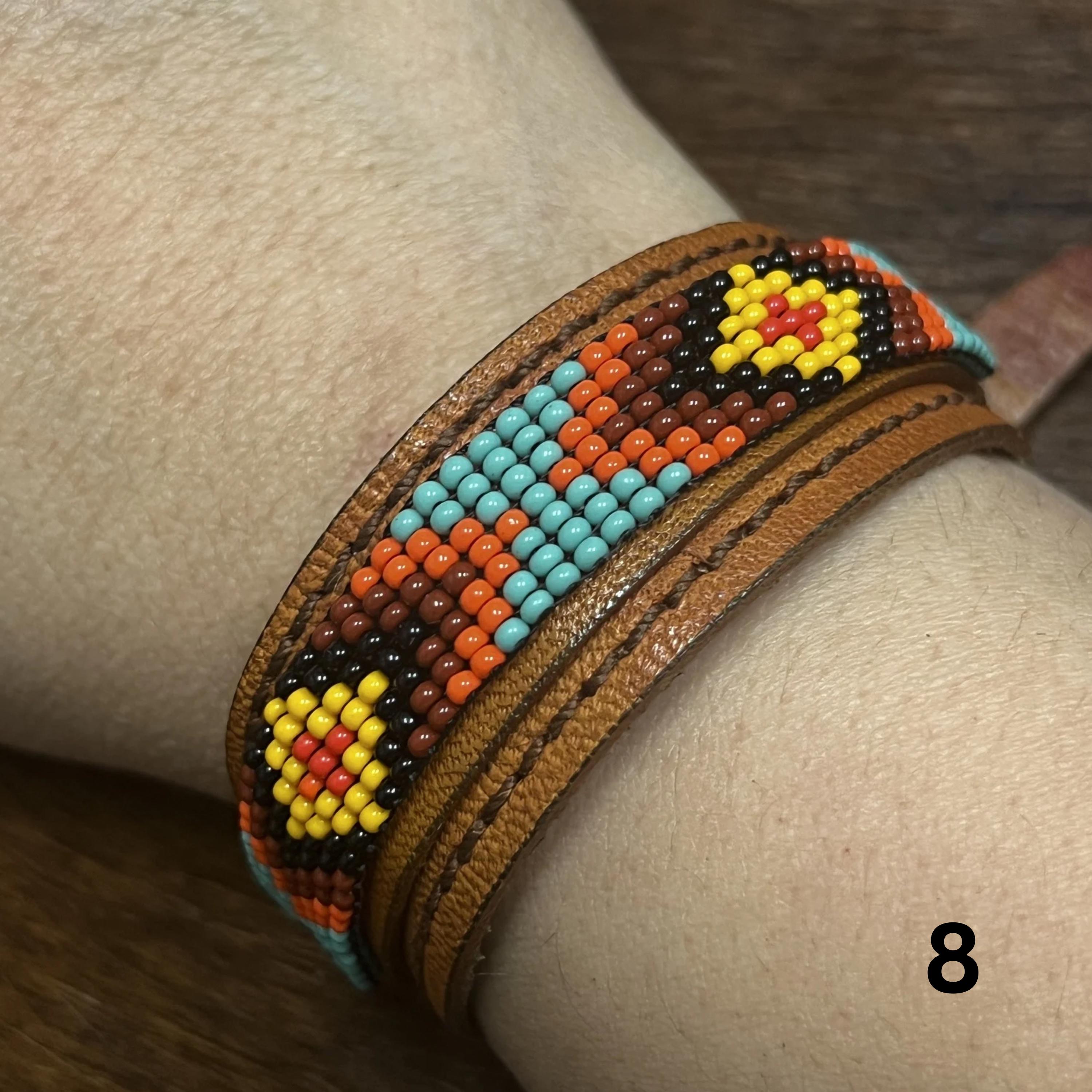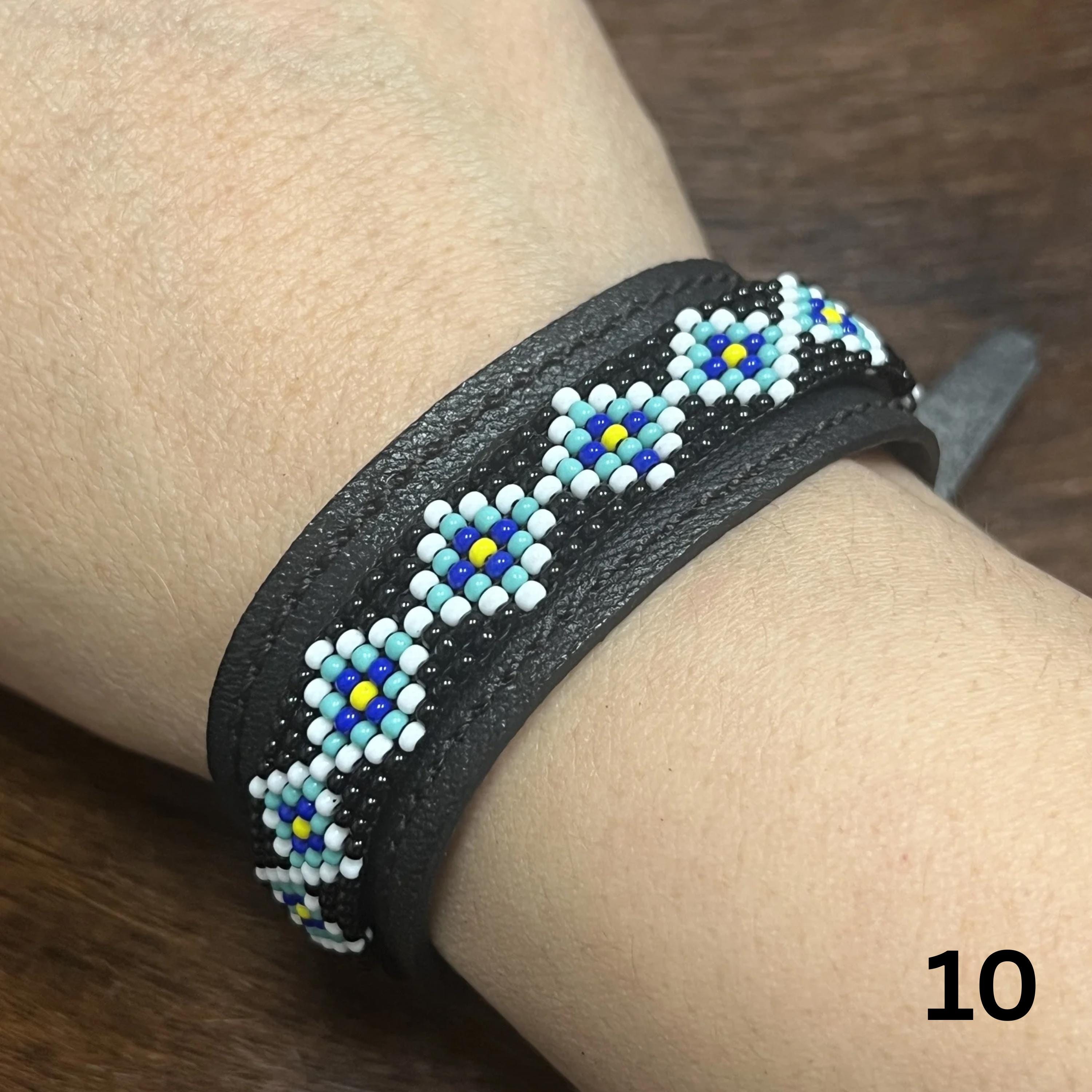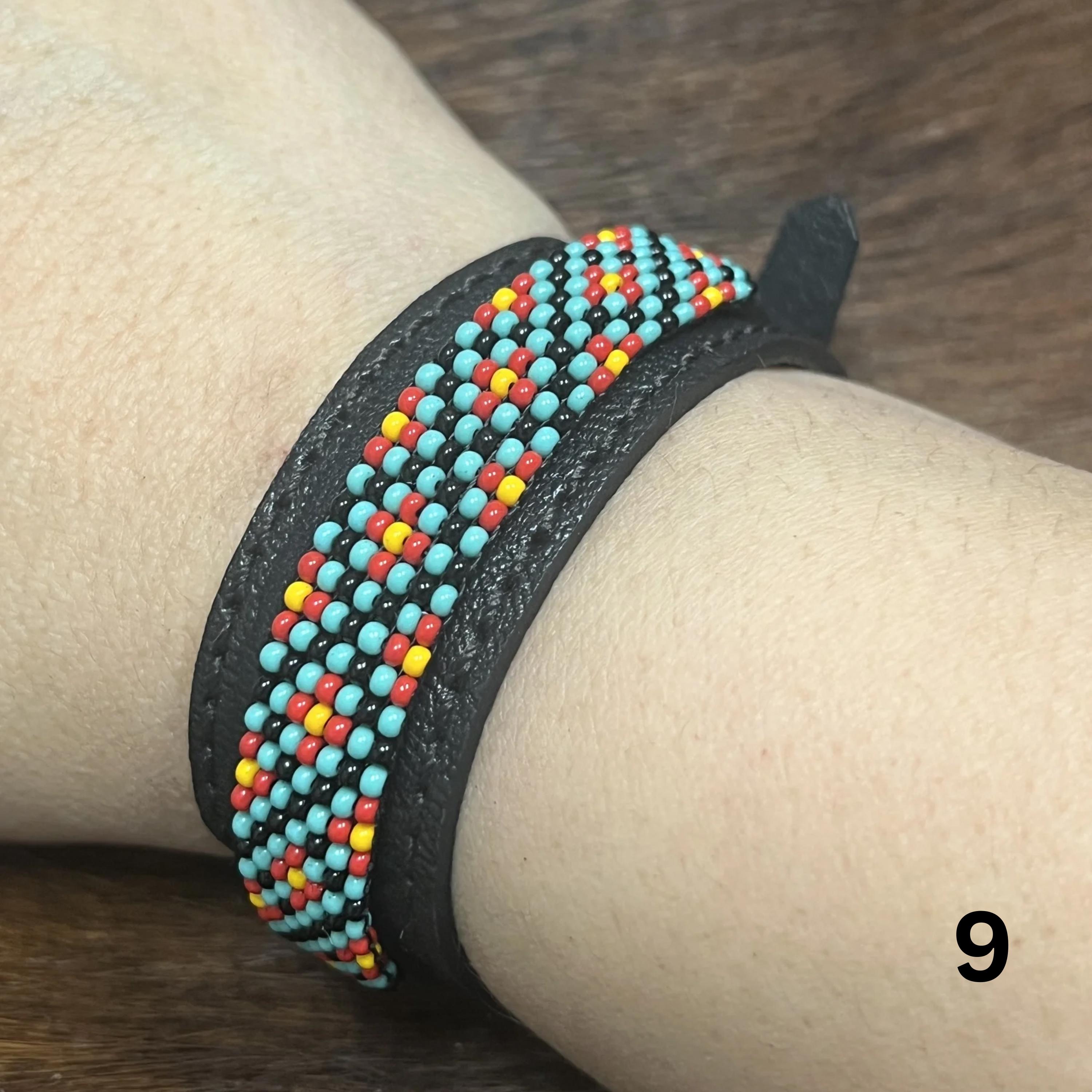 These unique accessories are made with high-quality leather and adorned with glass seed beads, creating a beautiful fusion of ethnic art and bohemian fashion. Perfect for both men and women, the adjustable design ensures a comfortable fit for all wrist sizes.