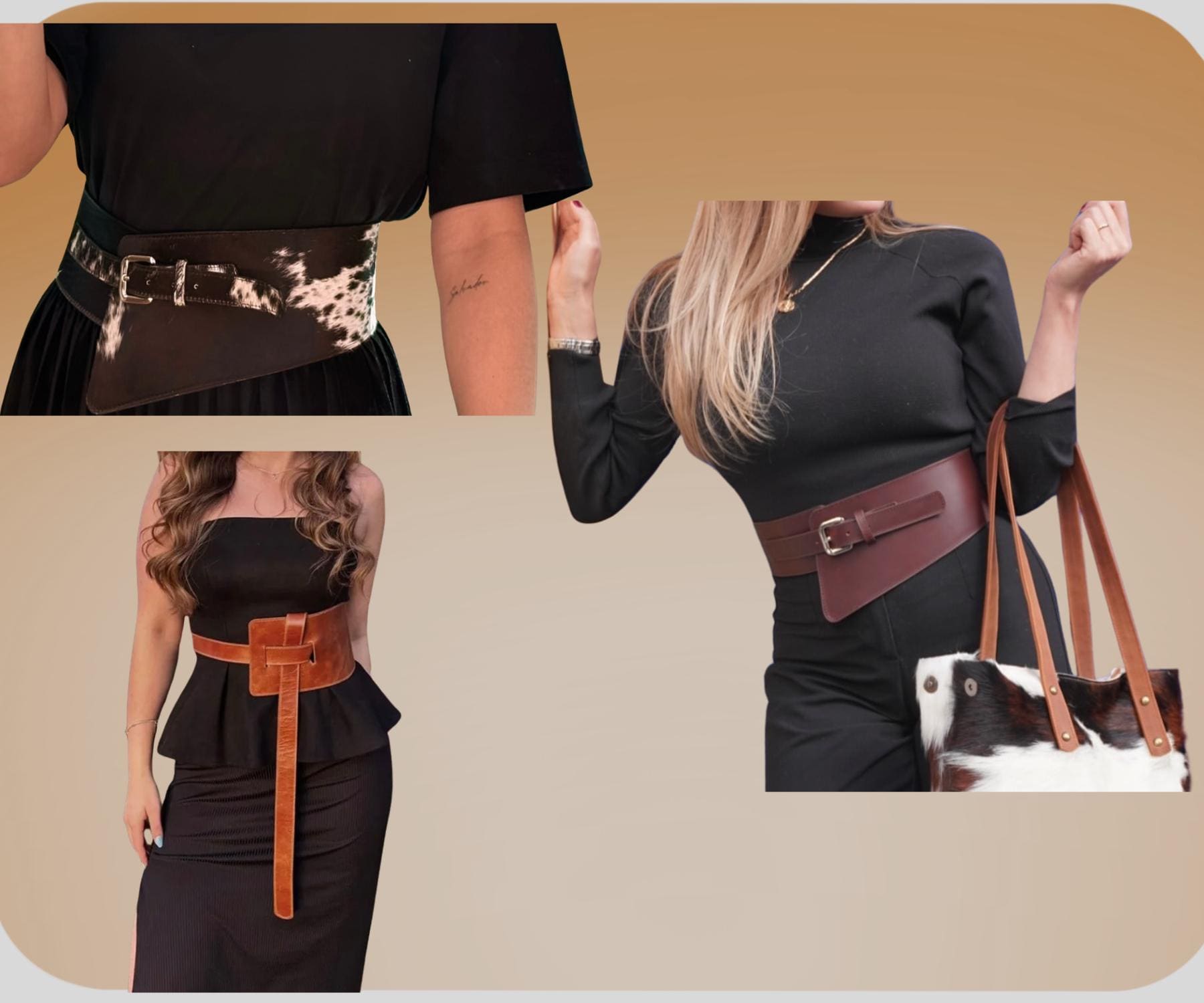 Handmade Leather & Cowhide Belts – Western Style Waist Belt, Real Cowhide Corset Belt, Ranch Fashion, Adjustable Women’s Belt from Ecuador