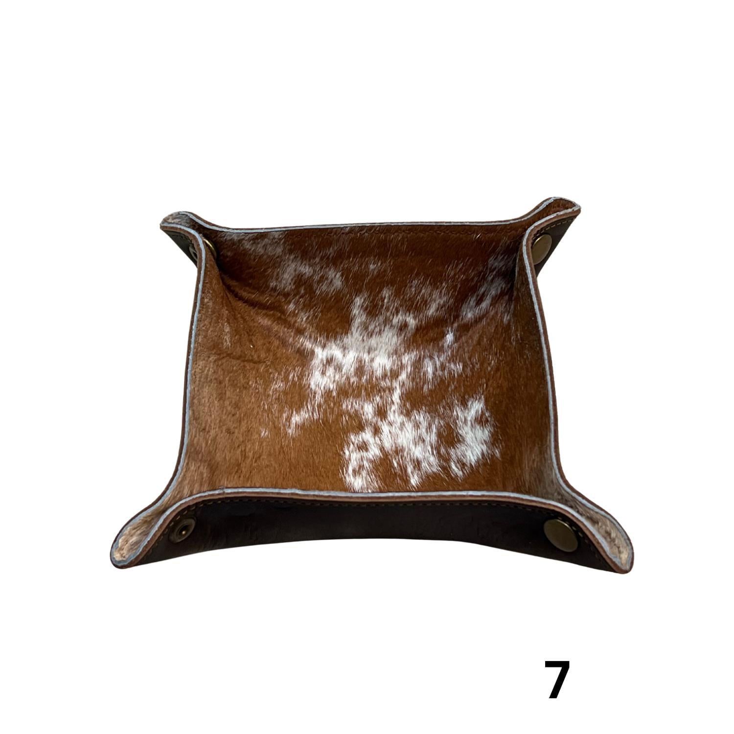 Cowhide Leather Catchall Tray, Desk Organizer, Jewelry Dish