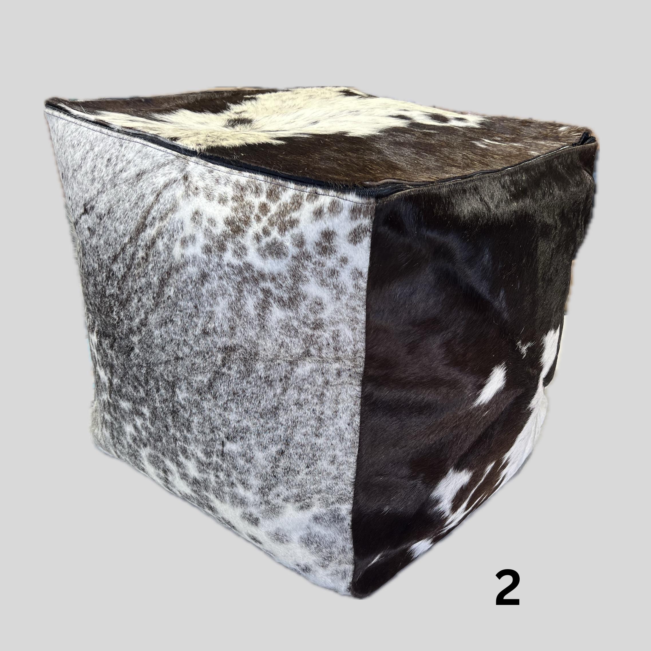 Material: The ottoman is made from 100% cowhide, including leather and hair on hide. As natural products, no two hides are identical, so variations are to be expected.
