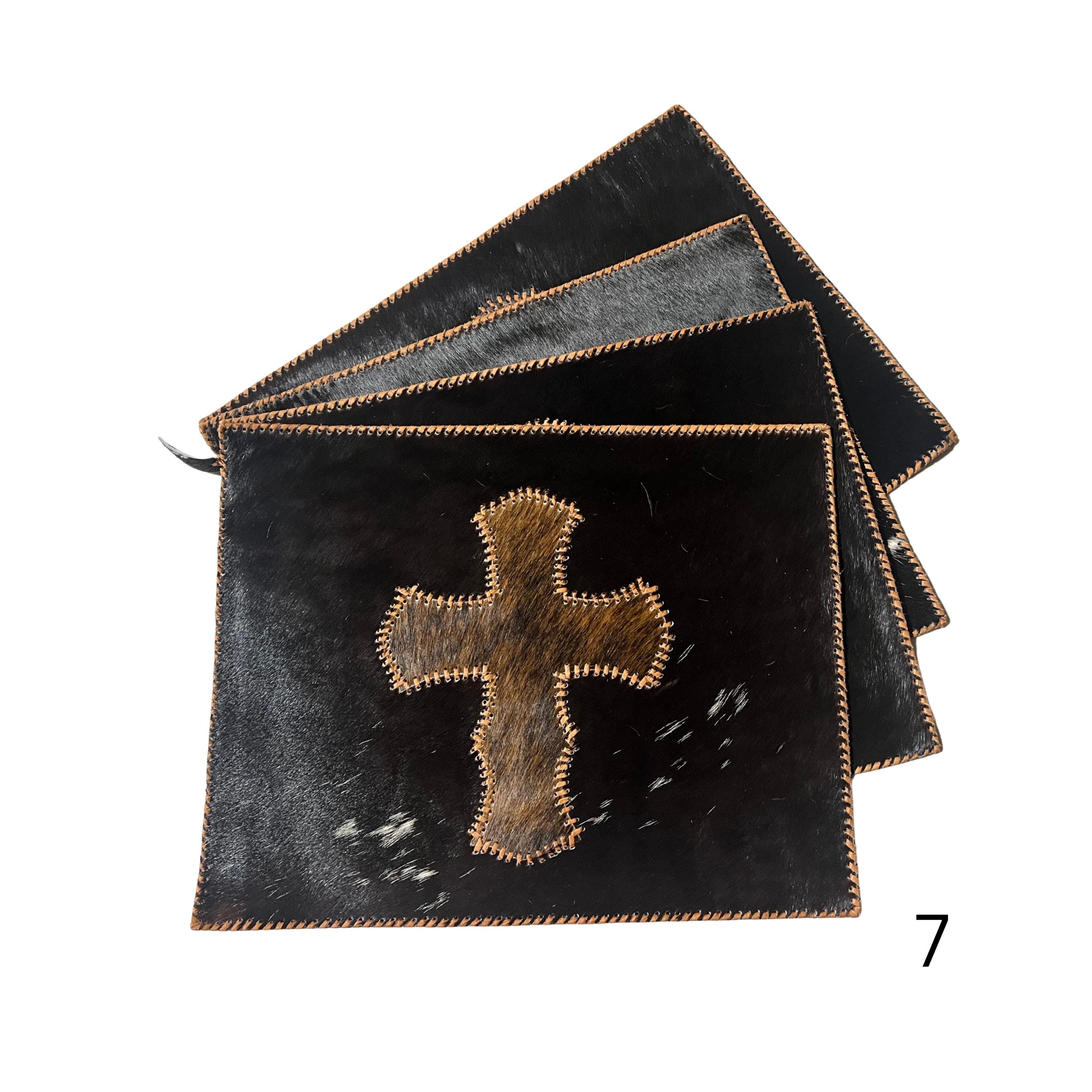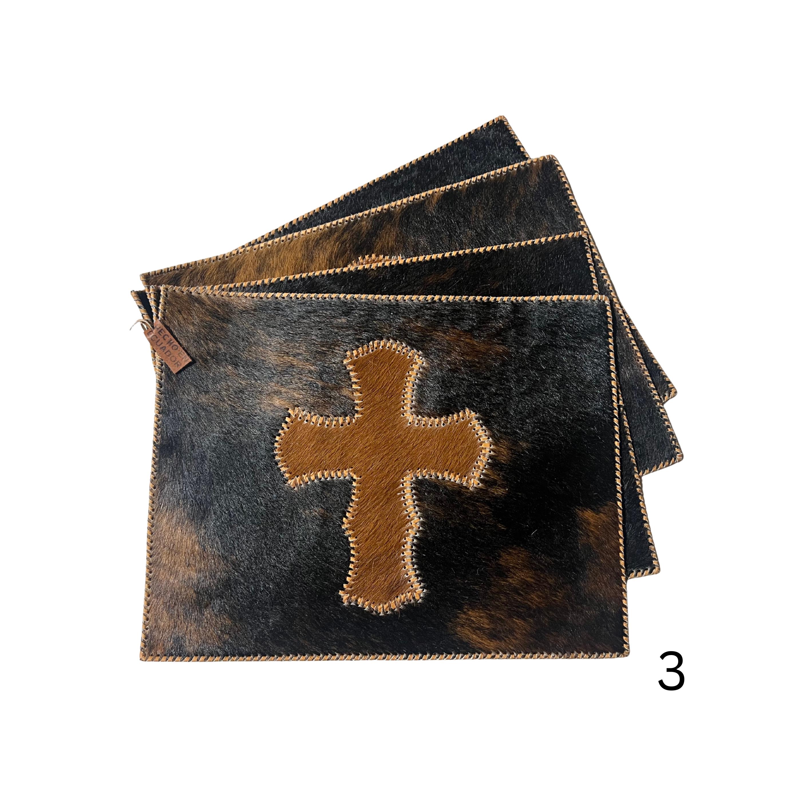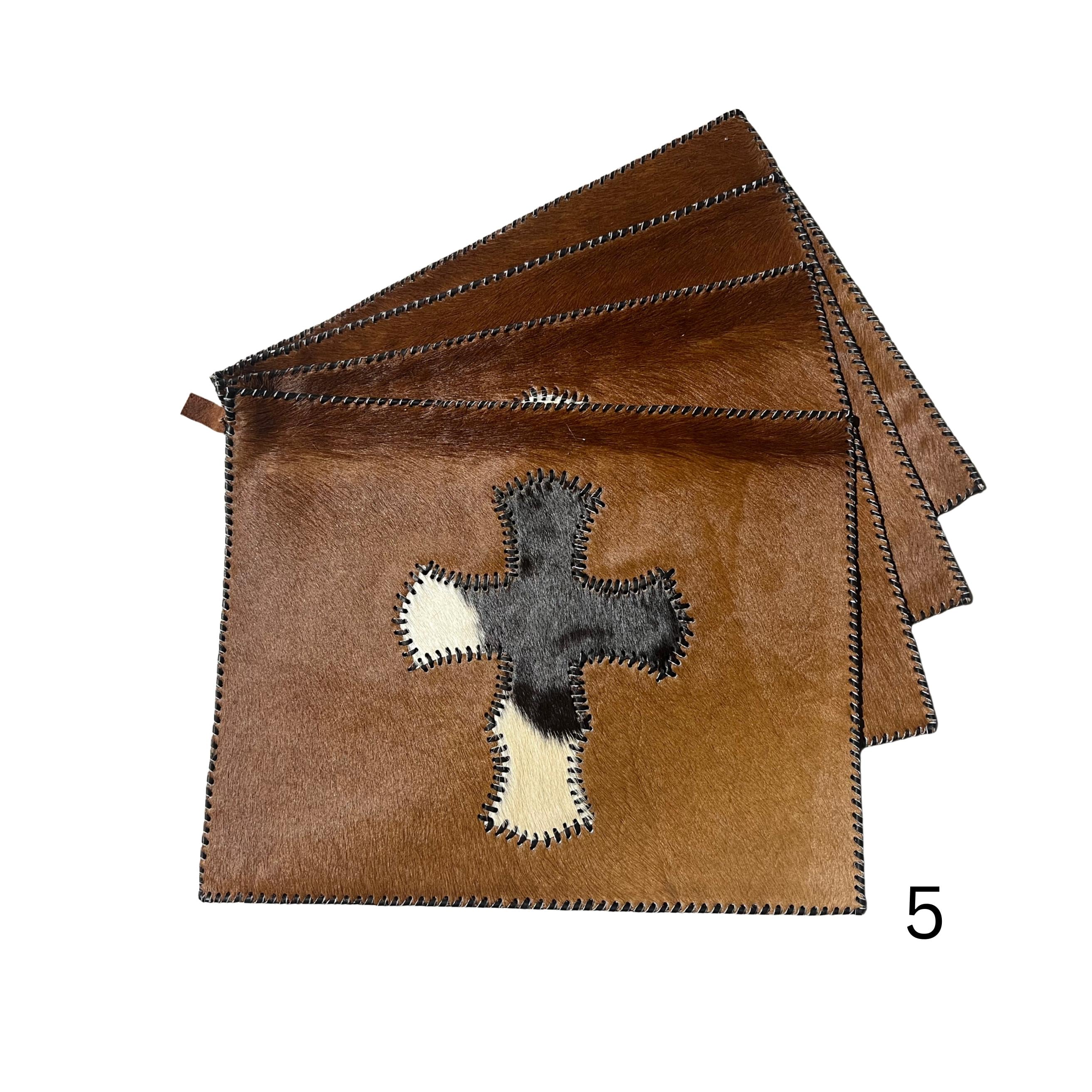 Stitched Cowhide Cross Placemats Set