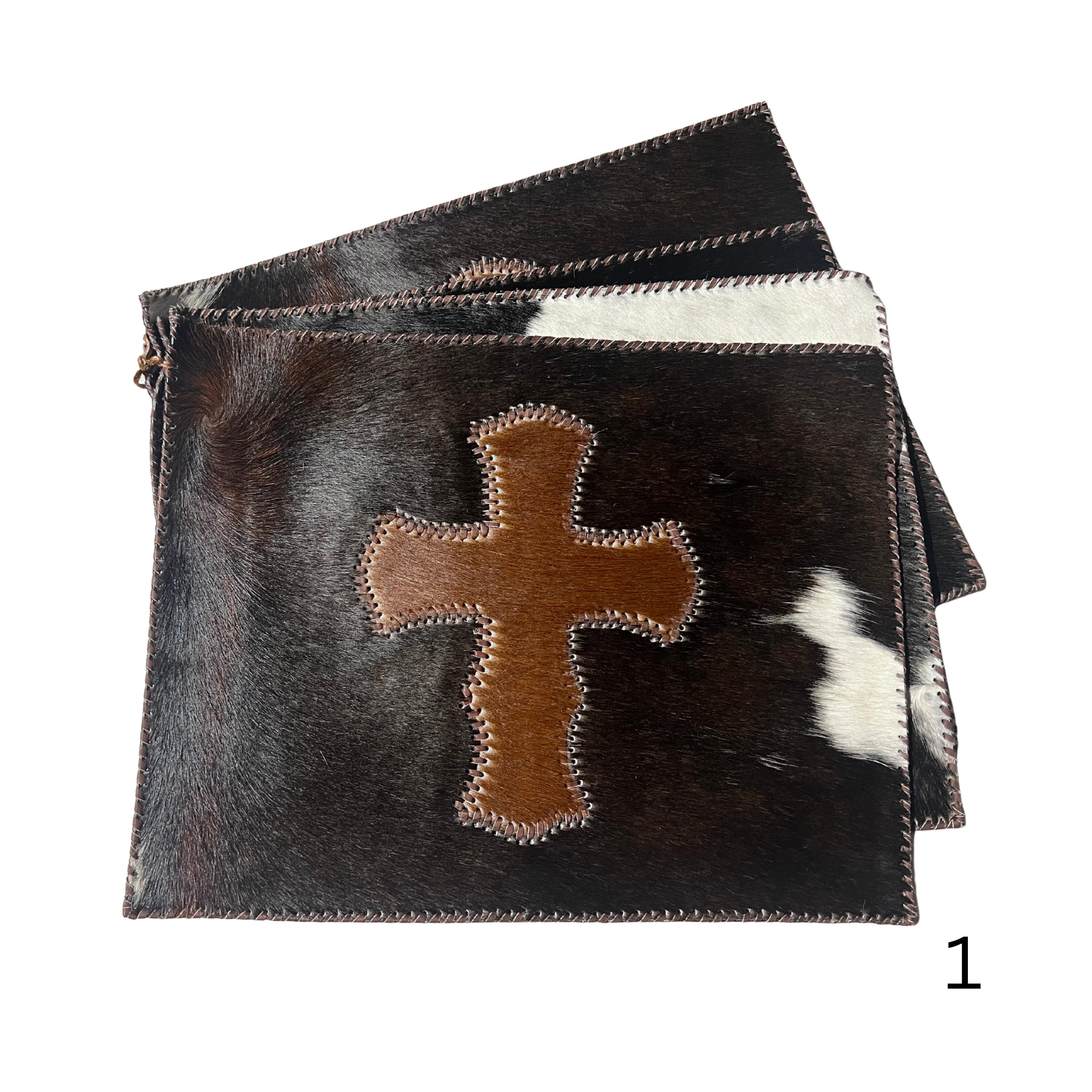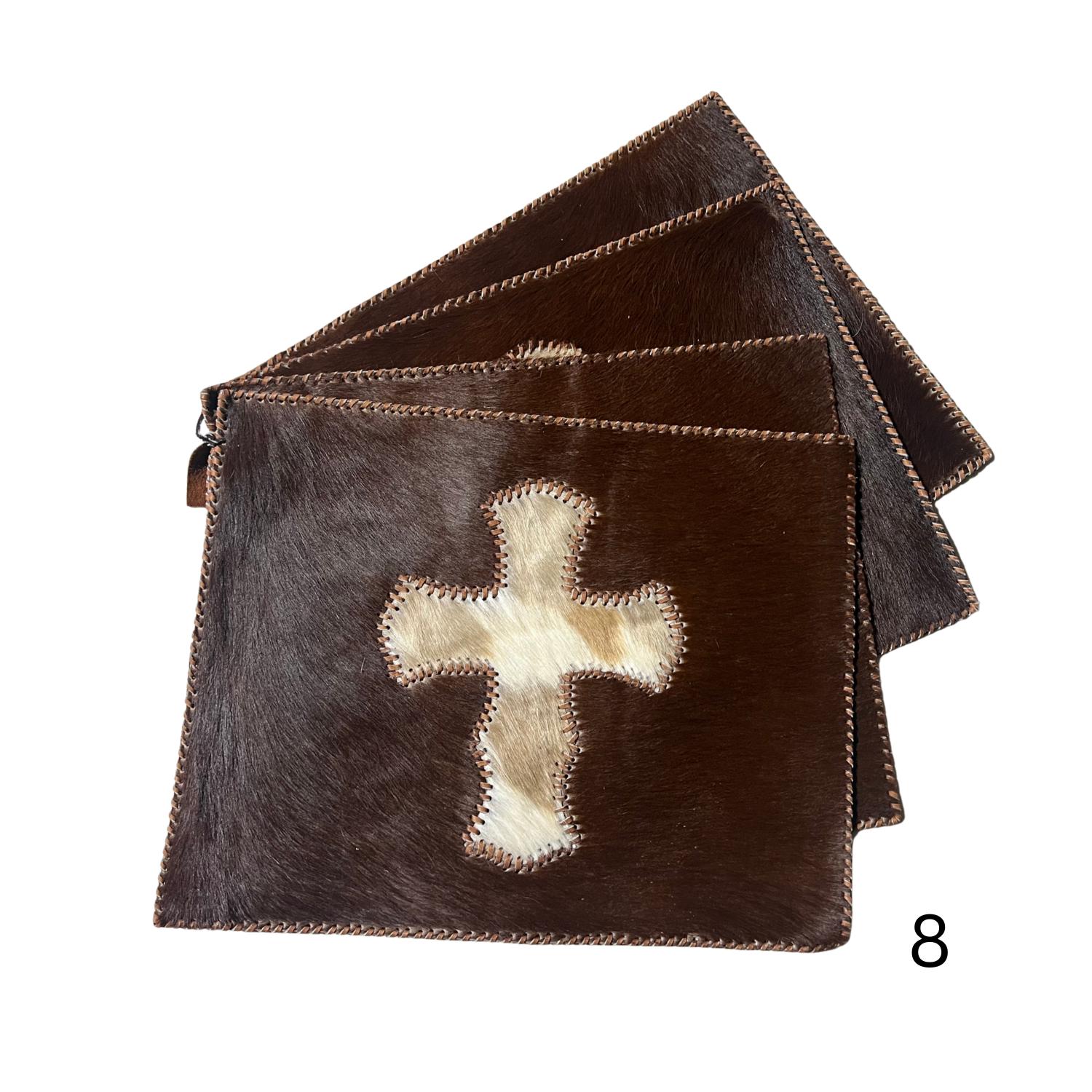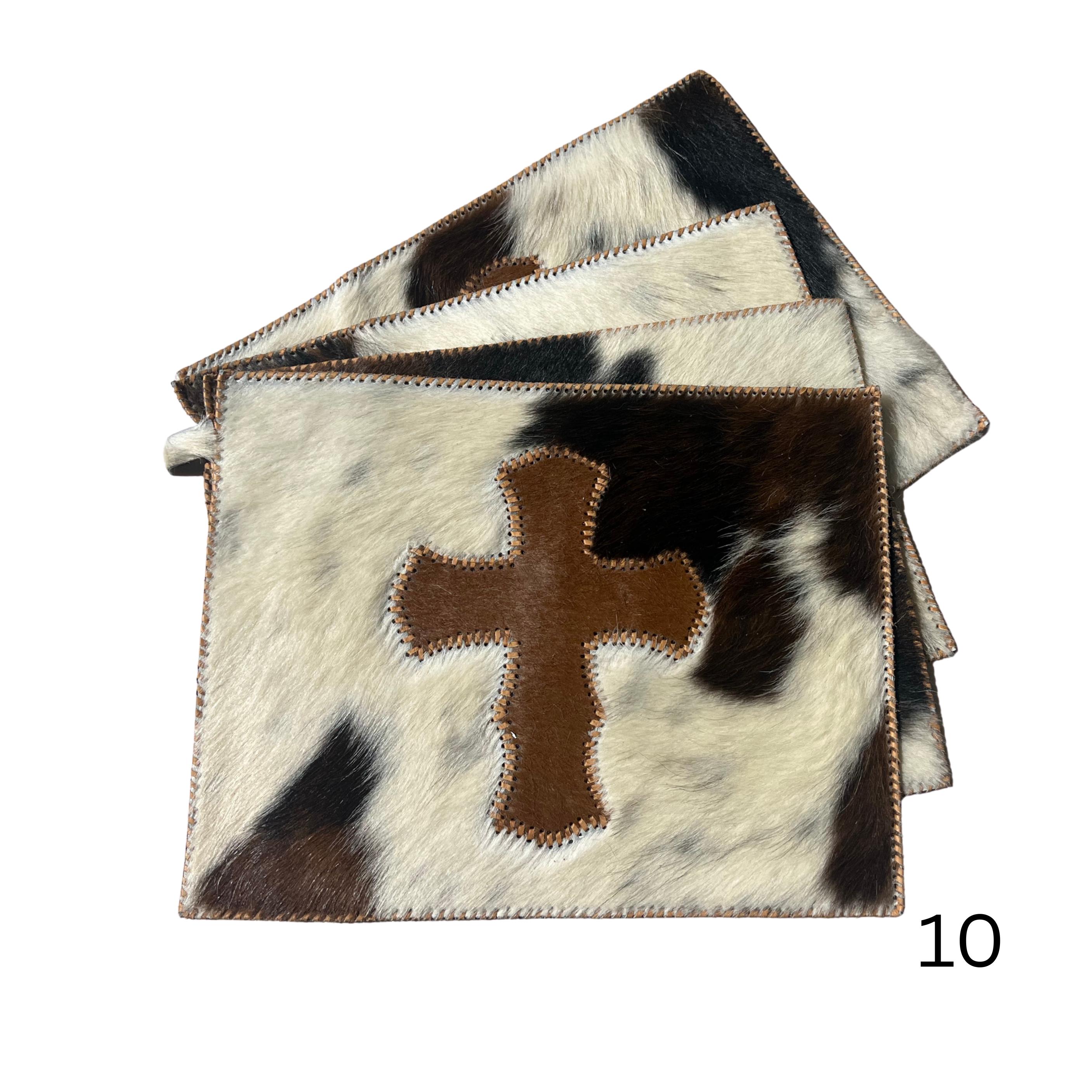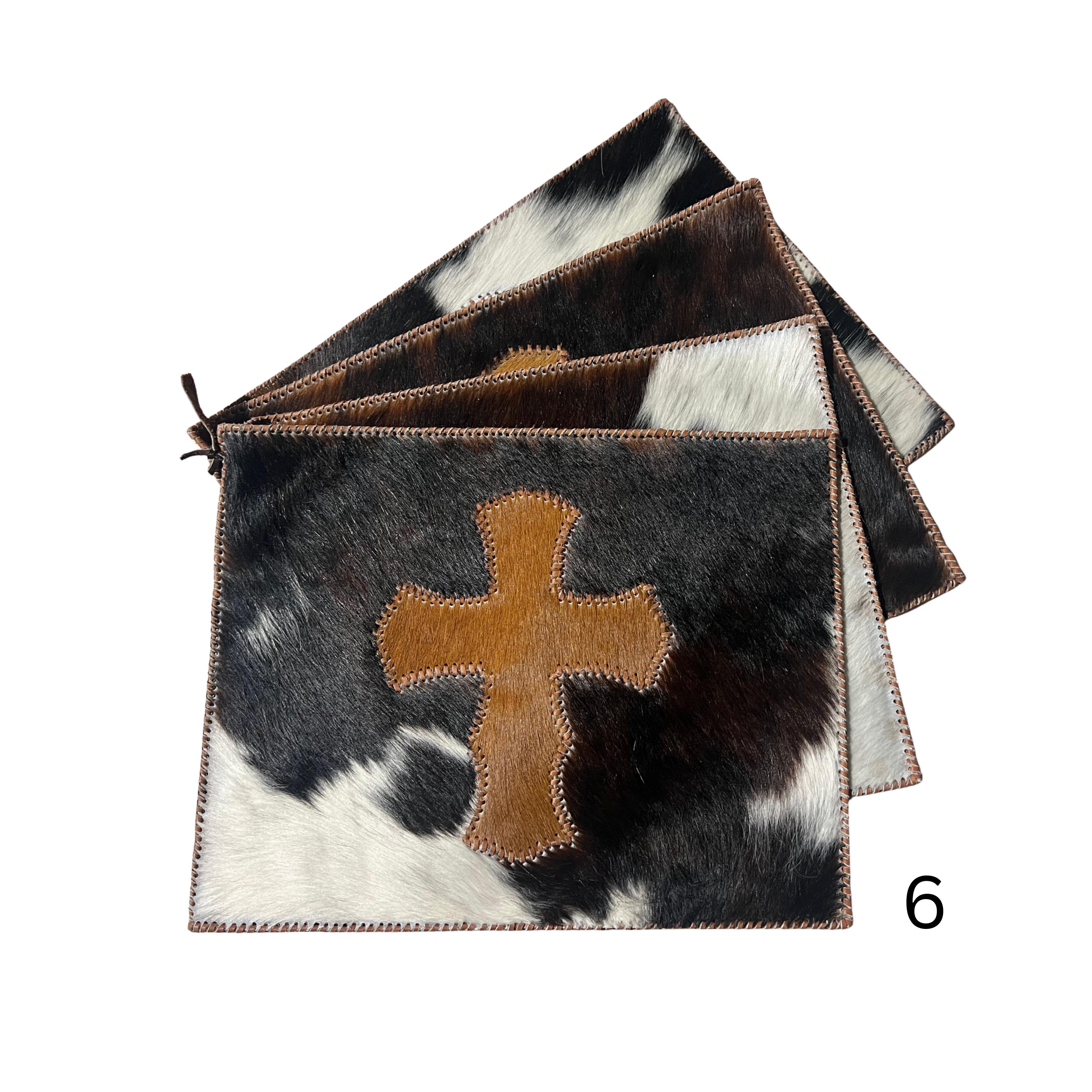 Stitched Cowhide Cross Placemats Set