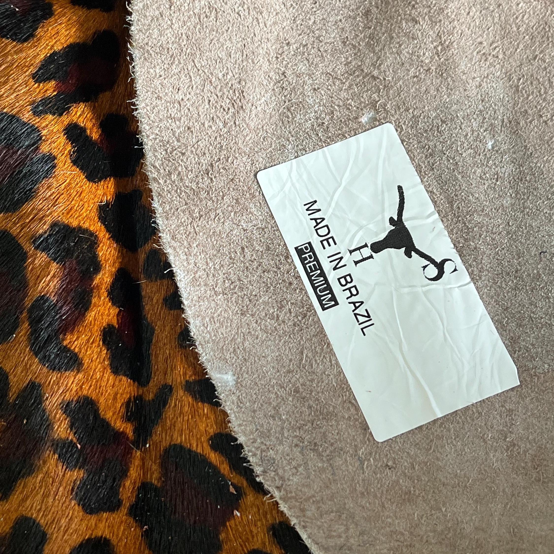 Make a bold statement in your home with this premium leopard print cowhide rug, crafted from genuine Brazilian cowhide leather. Featuring a rich golden-brown base with striking black leopard spots, this rug adds a luxurious safari-inspired touch to any interior.