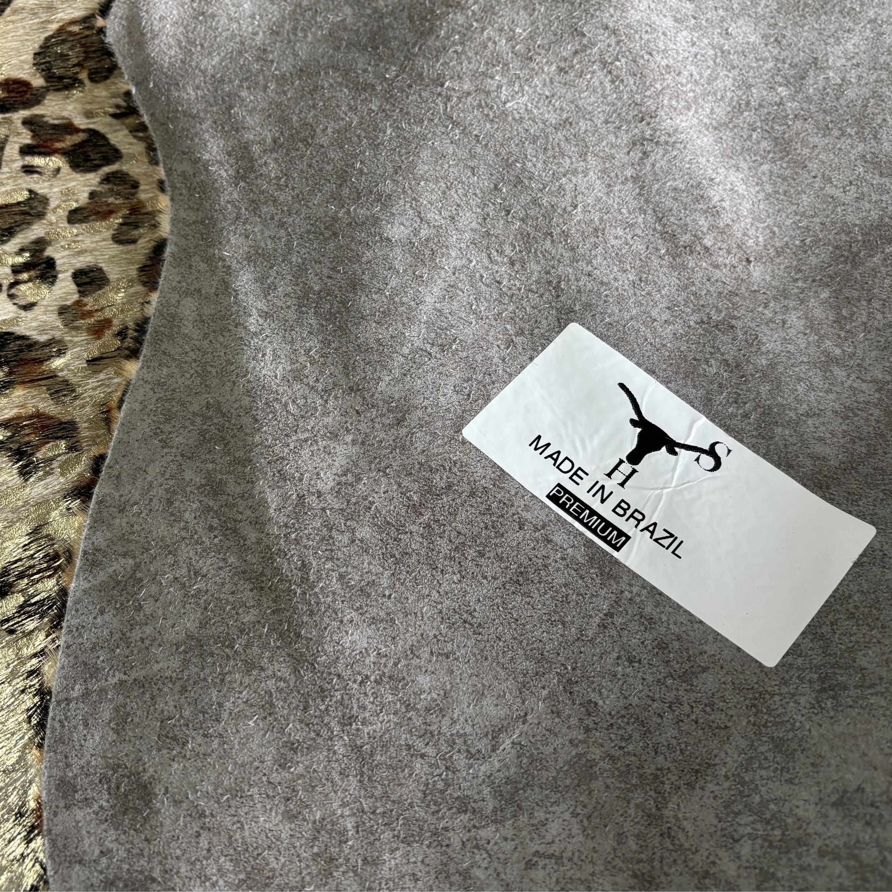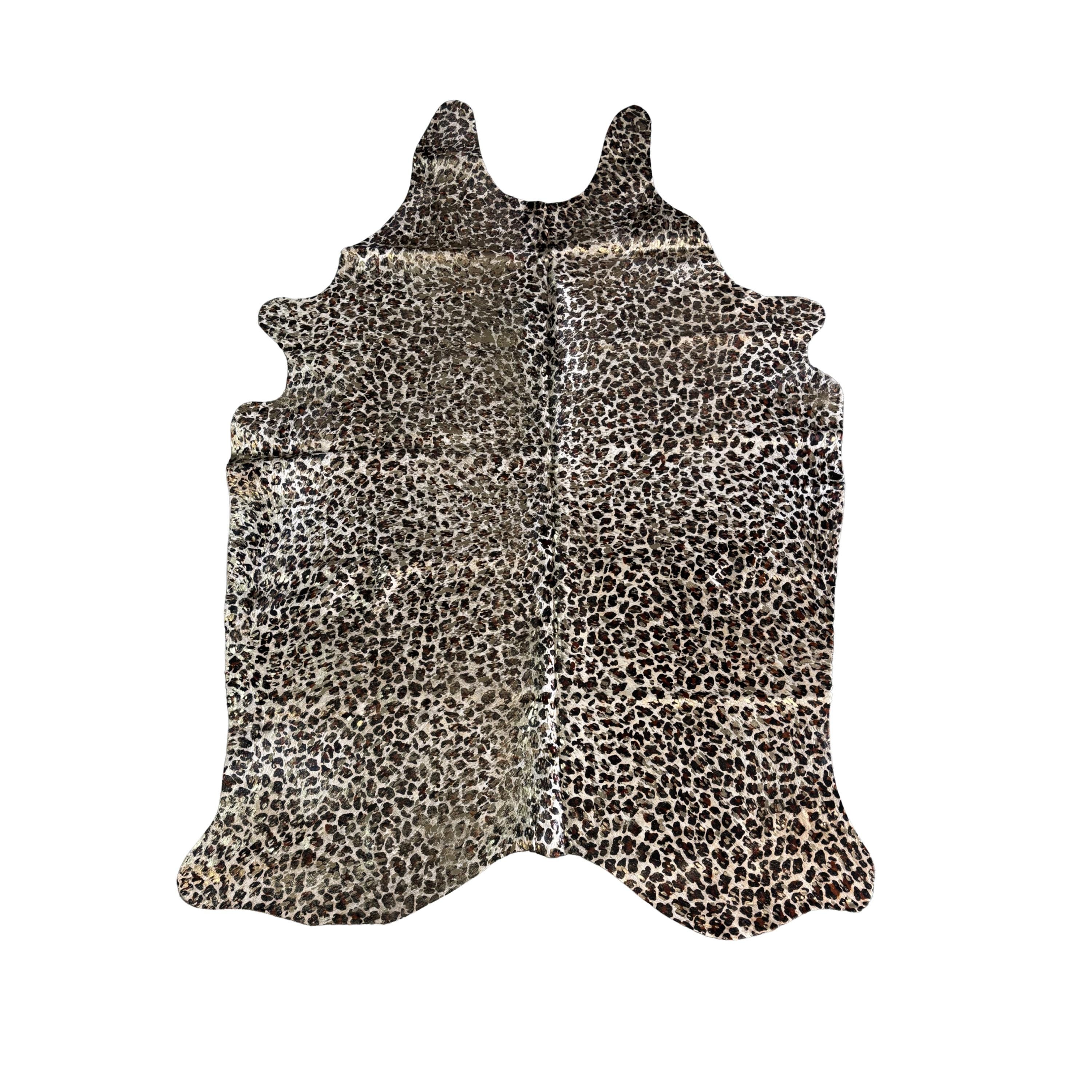 Brazilian Leopard and Metallic Gold Print Cowhide Rug (7ftx7ft)