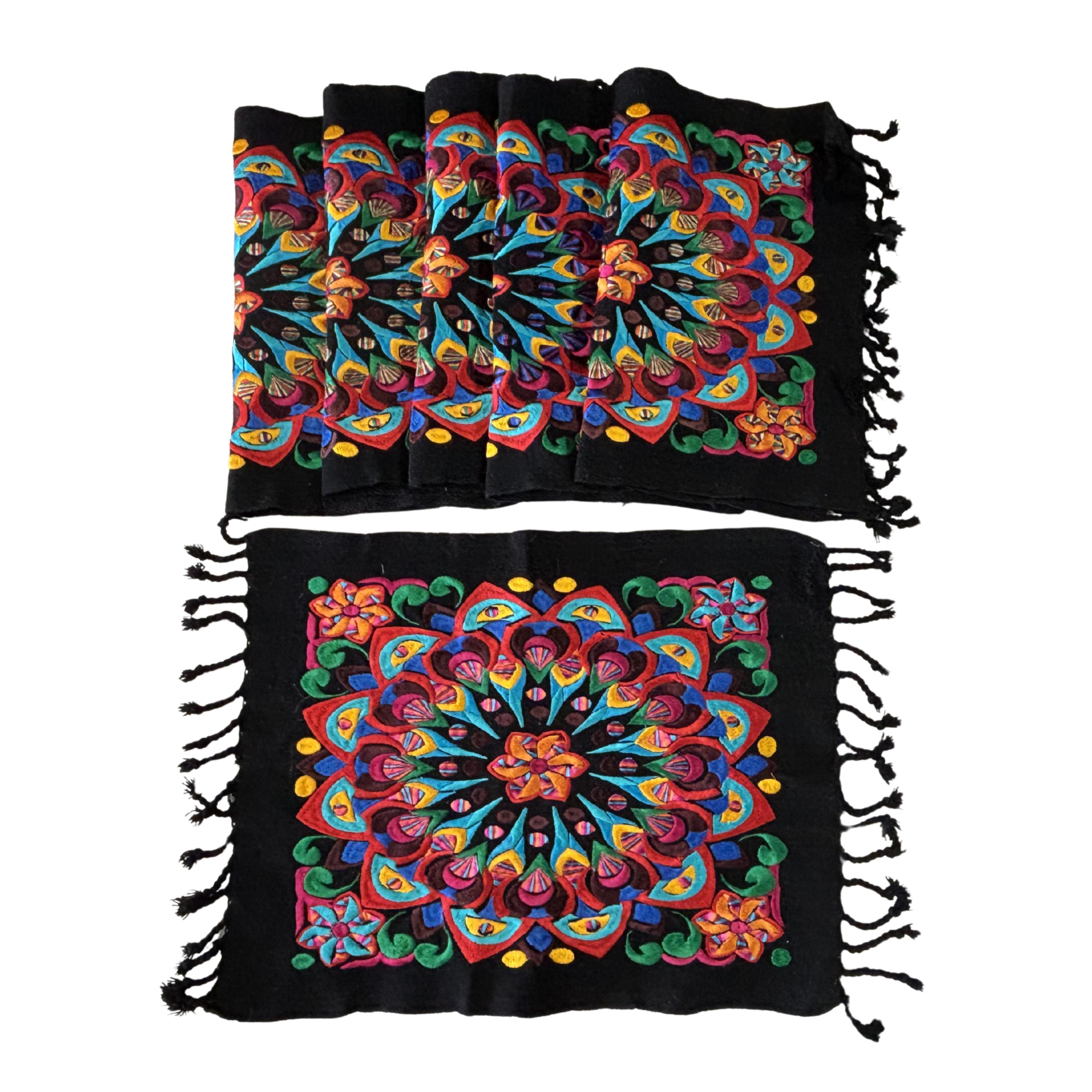 Embroidered Placemat Set of 6 | Mandala with Tassels